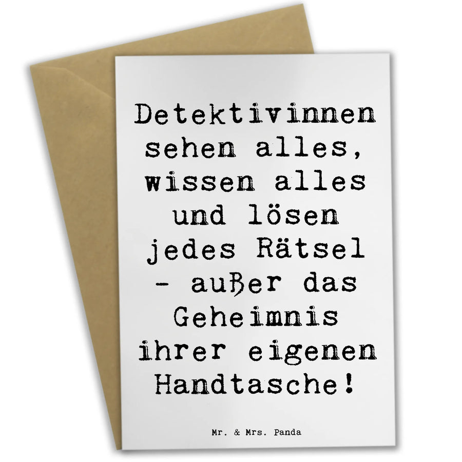 Grußkarte Spruch Detektivinnen sehen alles, wissen alles und lösen jedes Rätsel - außer das Geheimnis ihrer eigenen Handtasche! - Weiß