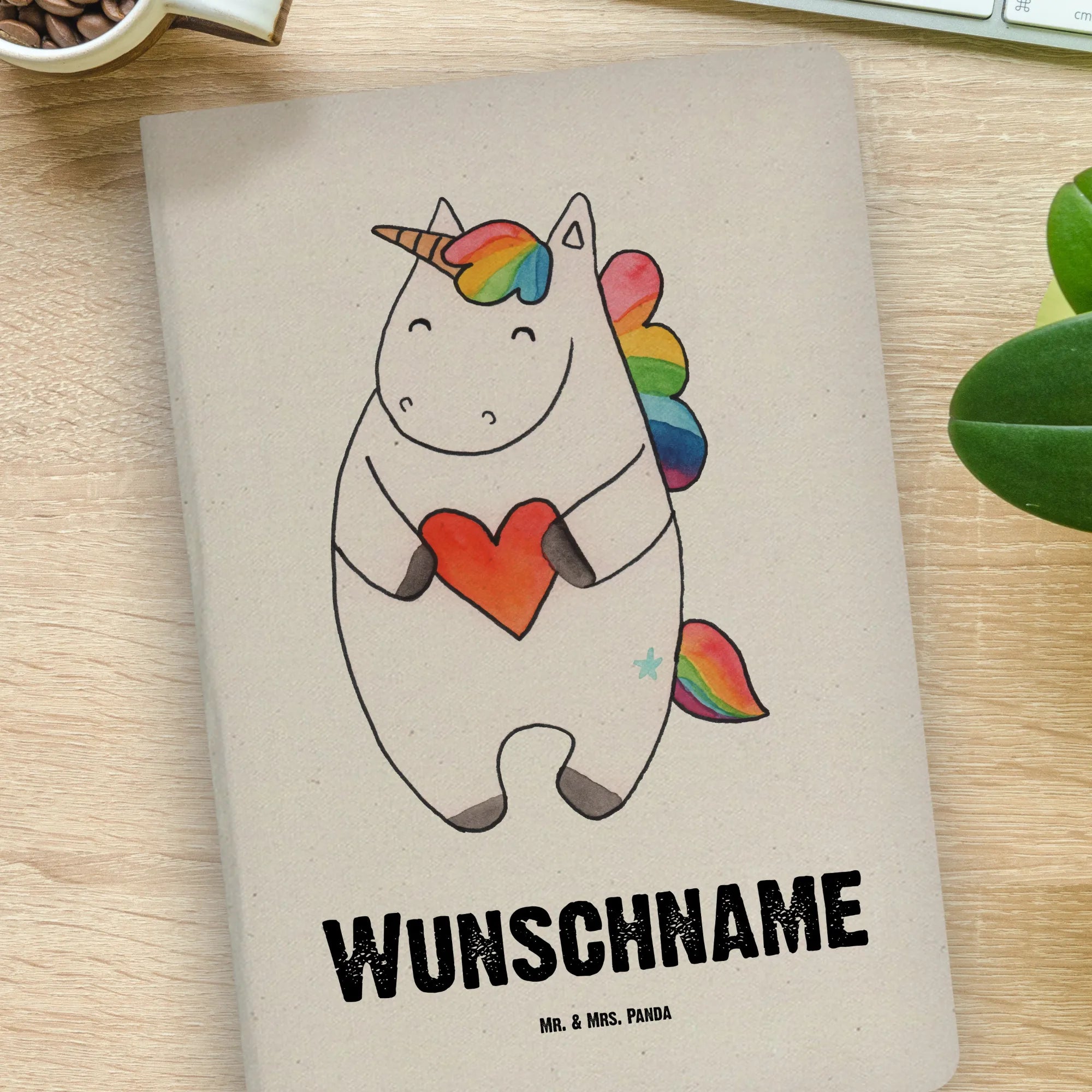DIN A4 Personalizowany Notatnik Jednorożec serce – Mr. & Mrs. Panda