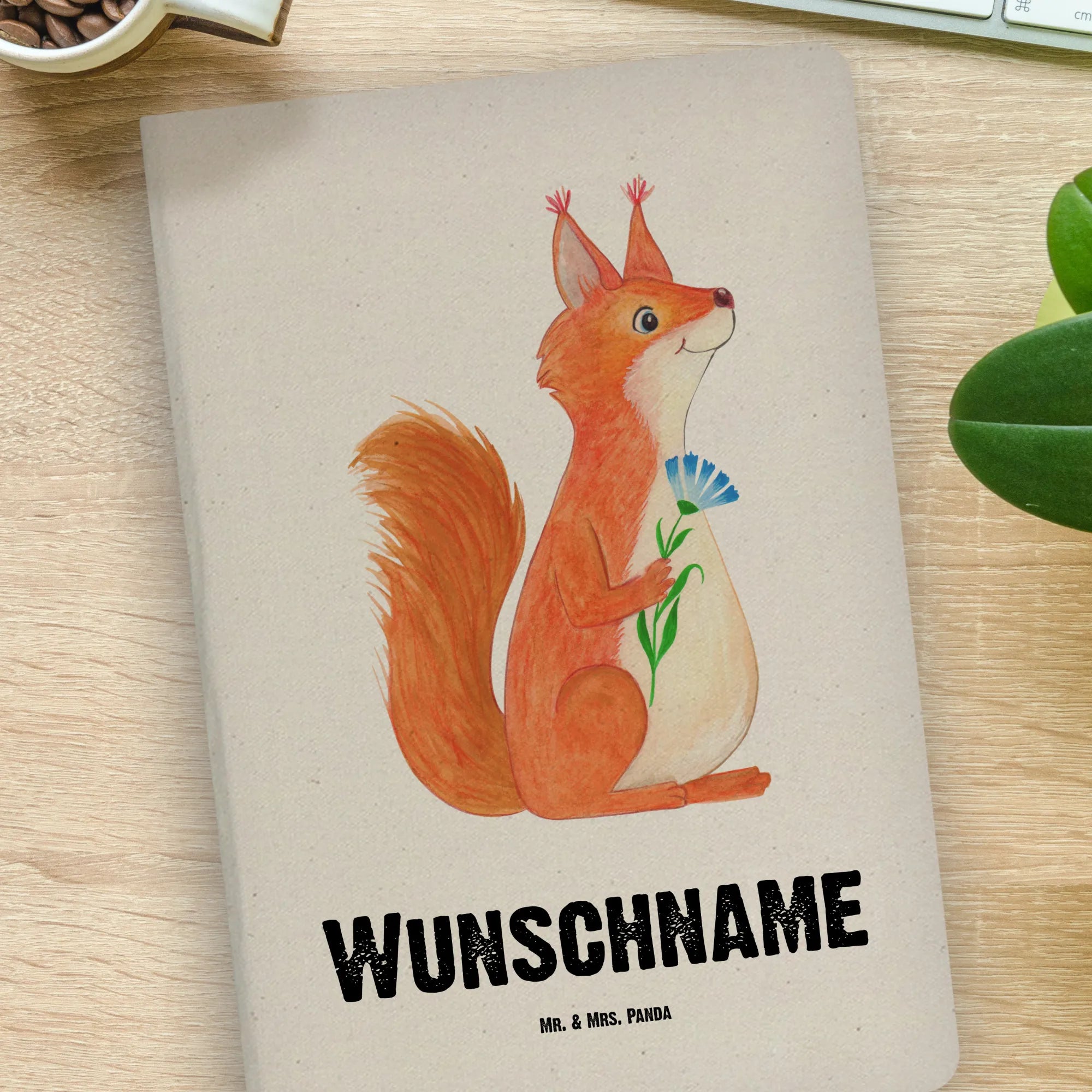 DIN A4 Personalizowany Notatnik wiewiórka kwiat