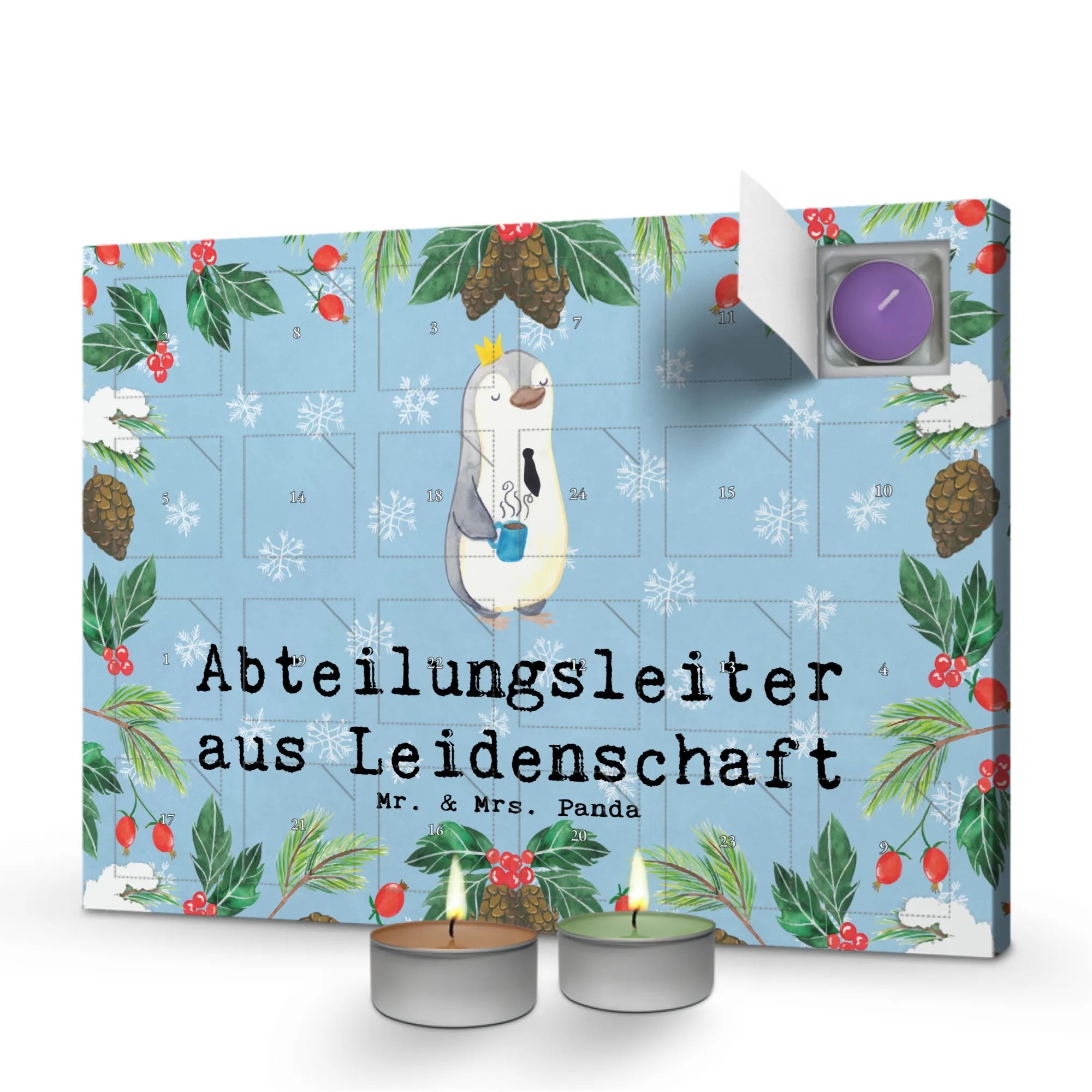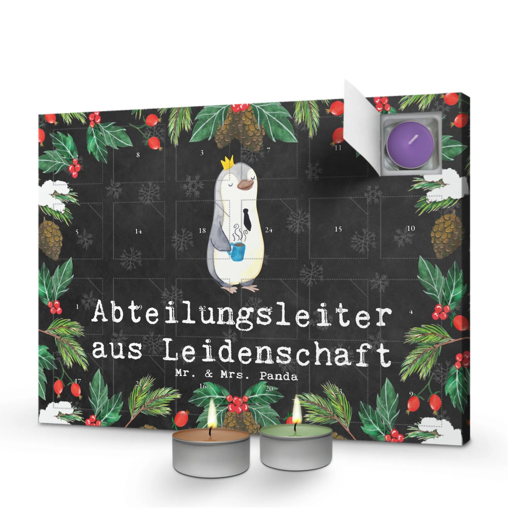 Ein besonderes Highlight: Die Kerzen sollten immer auf einer Unterlage verwendet werden, um eine sichere Nutzung zu gewährleisten. Verschenke ein Stück Weihnachtszauber und zeige Deinem Abteilungsleiter, dass Du seine Arbeit wertschätzt – mit dem Duftkerzen Adventskalender von Mr. & Mrs. Panda! Jeder Tag wird zu einem besonderen Erlebnis, das das Warten auf Weihnachten versüßt.