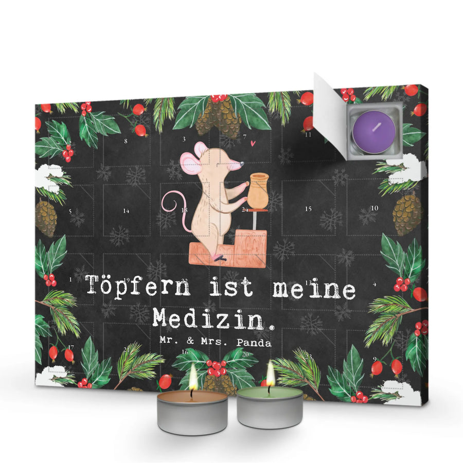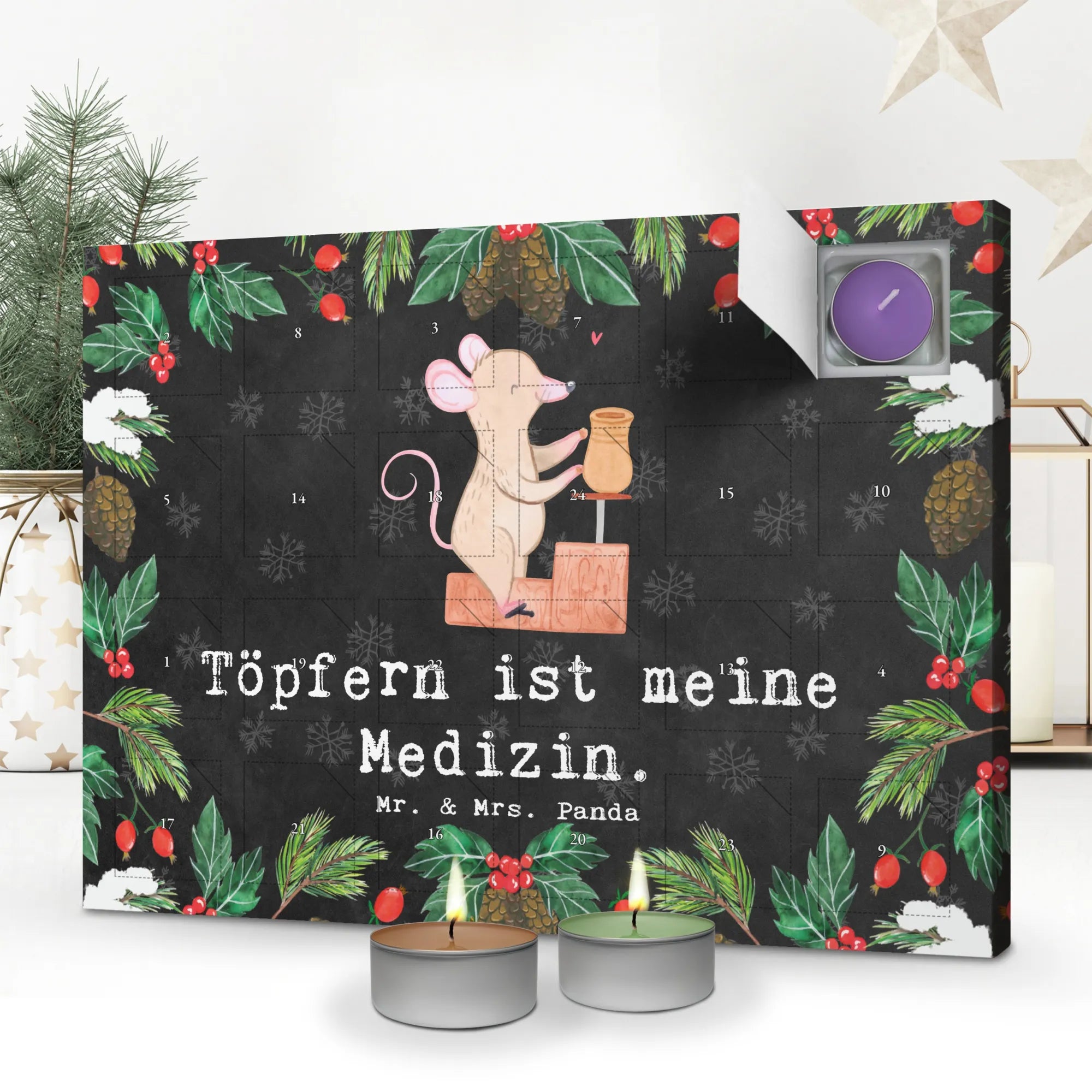 Der Duftkerzen Adventskalender "Maus Töpfern Medizin" ist das perfekte Geschenk für alle, die das Töpfern als ihr liebstes Hobby betrachten und die Wärme von feinen Düften genießen. In der liebevollen Gestaltung von Mr. & Mrs. Panda findest Du eine süße Maus, die an einem Töpferstuhl eine Vase töpfert. Mit dem Spruch "Töpfern ist meine Medizin" bringt er nicht nur Freude, sondern auch Entspannung in die Vorweihnachtszeit.