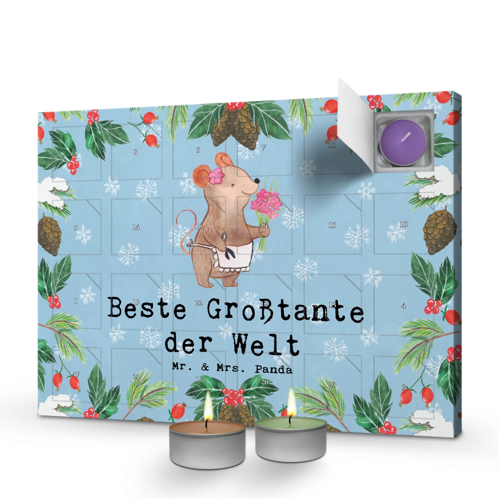 Der Duftkerzen Adventskalender "Beste Großtante der Welt" von Mr. & Mrs. Panda ist das perfekte Geschenk für deine Großtante! Stell dir vor, wie sie jeden Tag im Advent mit Freude eine der sechs zauberhaften Duftkerzen auspackt. Jede Kerze hat ihren eigenen, weihnachtlichen Duft, darunter köstliche Aromen wie Vanille, Lavendel und Apfel-Zimt. Mit einem liebevollen Motiv, das eine süße Maus zeigt, die stolz ihre Blumen präsentiert, zaubert dieser Kalender nicht nur ein Lächeln ins Gesicht, sondern sorgt auch für eine kuschelige Atmosphäre in der Adventszeit.