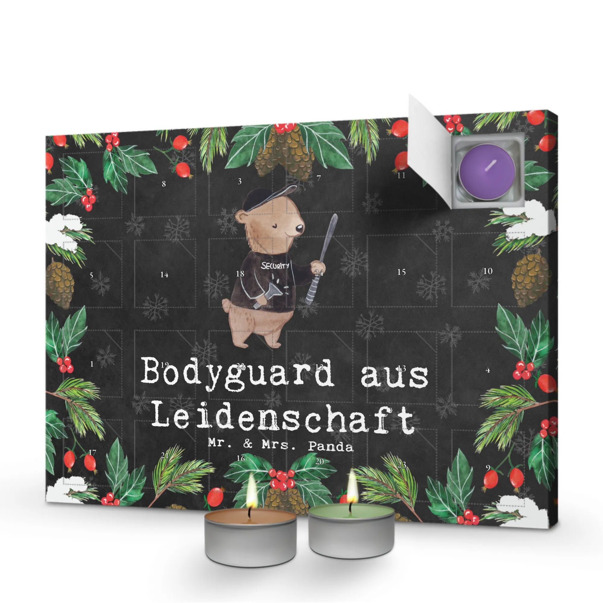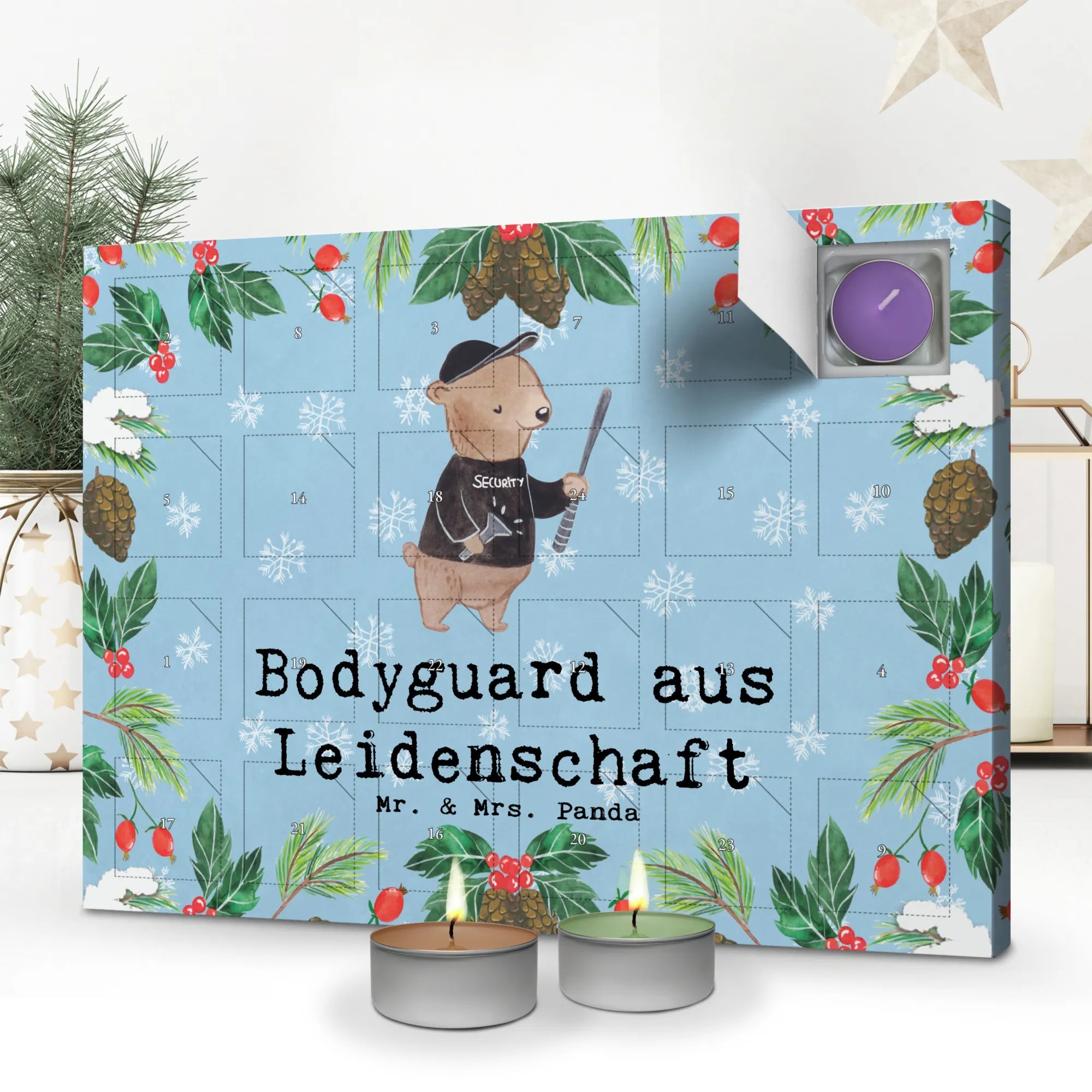 Der Duftkerzen Adventskalender "Bodyguard aus Leidenschaft" von Mr. & Mrs. Panda ist das perfekte Geschenk für alle Bodyguards und diejenigen, die in diesem spannenden Berufsfeld arbeiten. Dieser einzigartige Adventskalender ist nicht nur eine zauberhafte Dekoration zur Weihnachtszeit, sondern auch eine liebevolle Hommage an die mutigen Menschen, die für unsere Sicherheit sorgen. Mit wunderschönen handgezeichneten Motiven und dem charmanten Slogan "Bodyguard aus Leidenschaft" wird dieser Kalender zu einem unverwechselbaren Highlight in jedem Zuhause. Die liebevolle Zeichnung von Mrs. Panda auf der Frontseite bringt sofort ein Lächeln auf die Lippen und weckt die Vorfreude auf die besinnliche Zeit.
