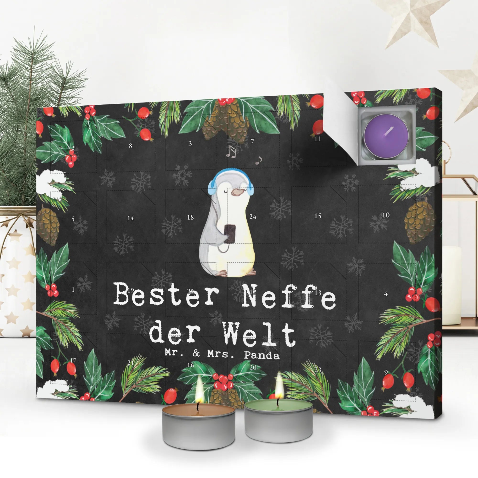 Mach dir die Vorweihnachtszeit besonders schön mit dem Duftkerzen Adventskalender 'Bester Neffe der Welt' von Mr. & Mrs. Panda! Dieser wunderbare Adventskalender, verziert mit einem niedlichen Pinguin, der Kopfhörer trägt und tolle Musik hört, ist das perfekte Geschenk für deinen Neffen. Er macht jede Adventszeit zu einem besonderen Erlebnis. In jedem der 24 Türchen verbirgt sich eine entzückende Duftkerze, die nicht nur für festliche Stimmung sorgt, sondern auch die Herzen deiner Lieben höher schlagen lässt.