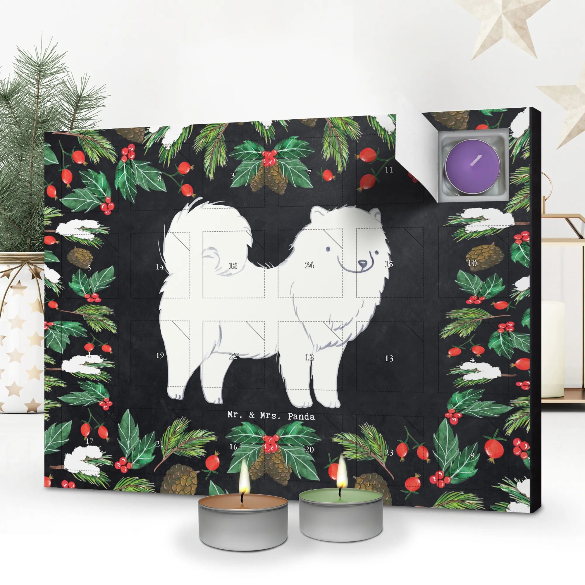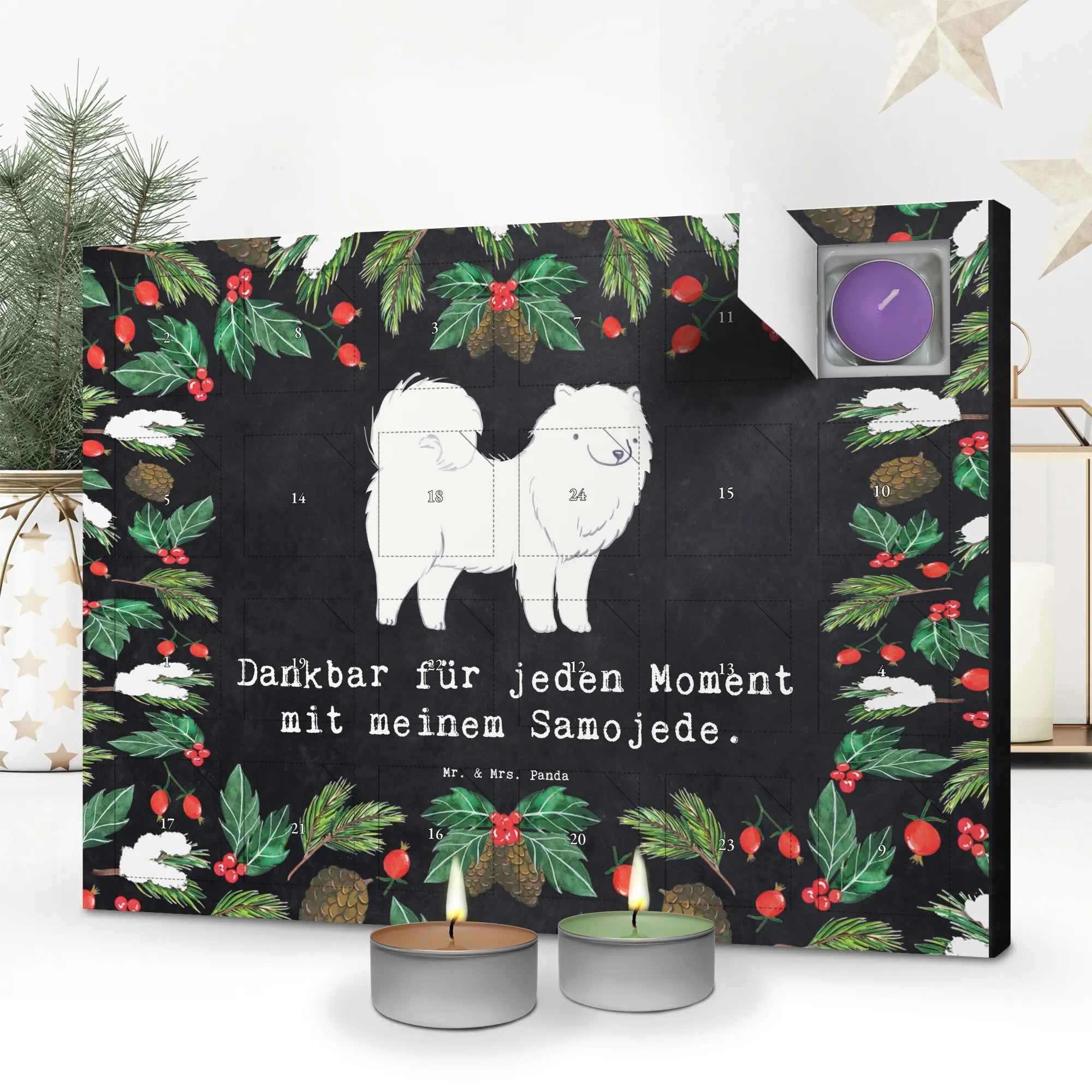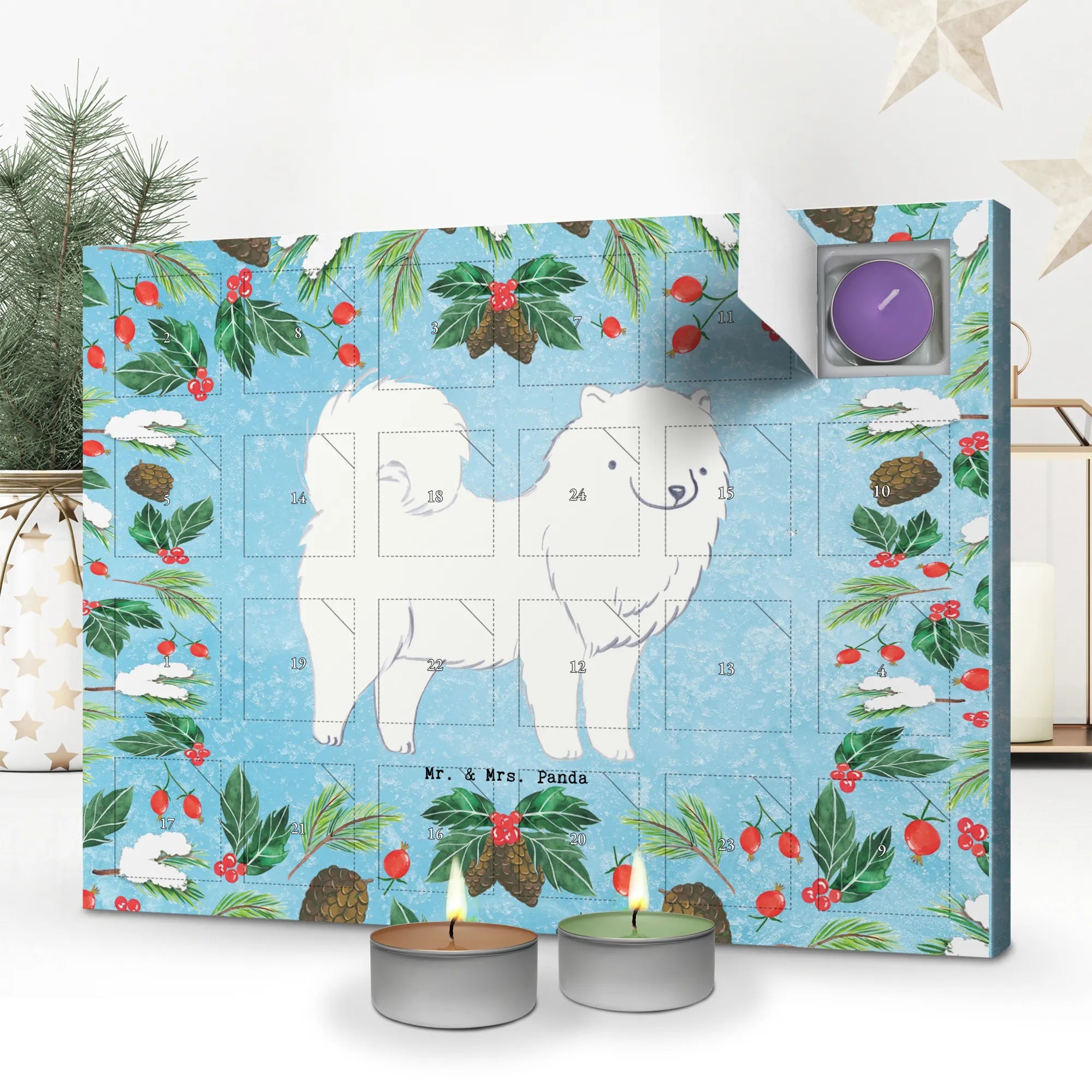 samojed Chwila - z napisem - lodowoniebieski