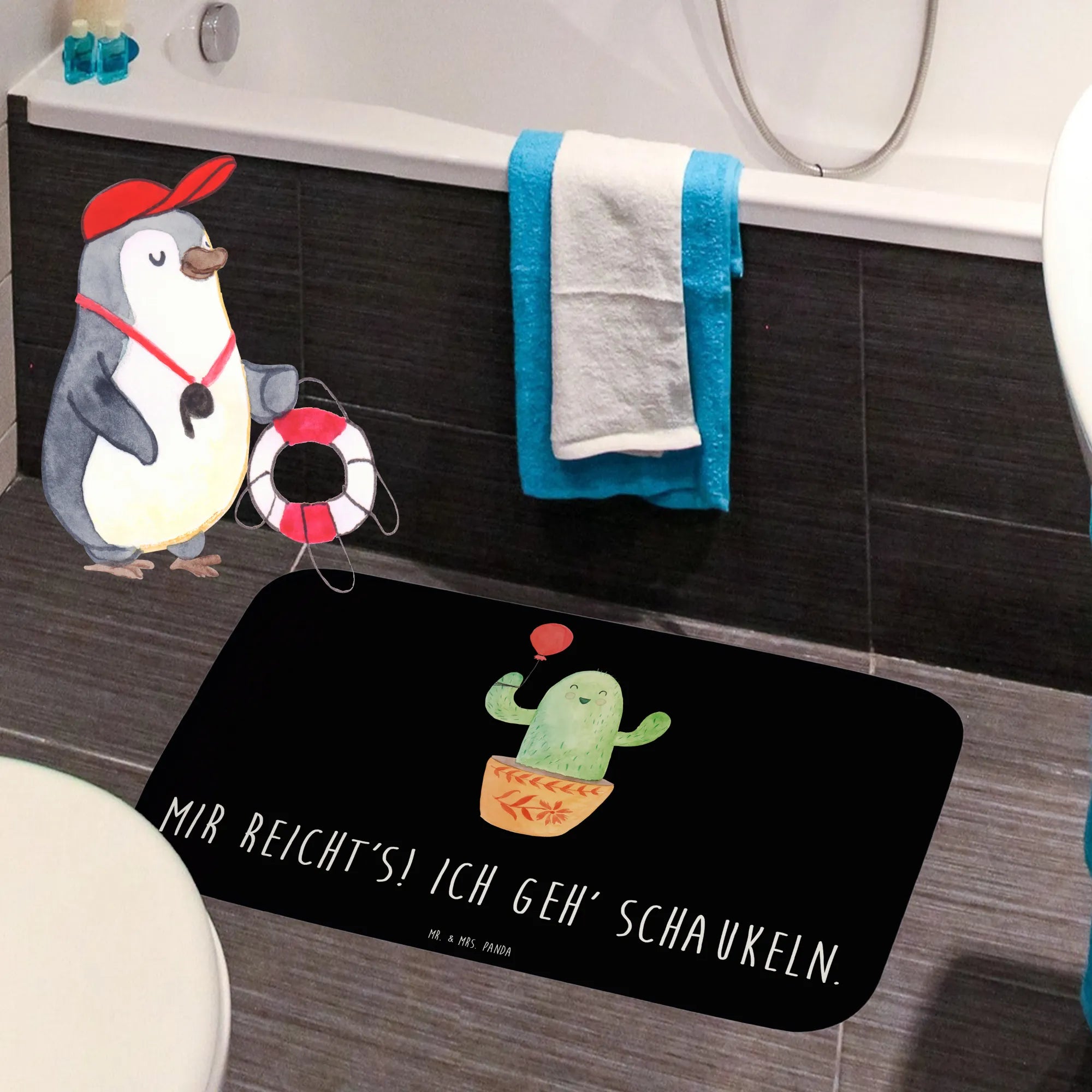 dywanik łazienkowy Kaktus balon - z napisem - biały