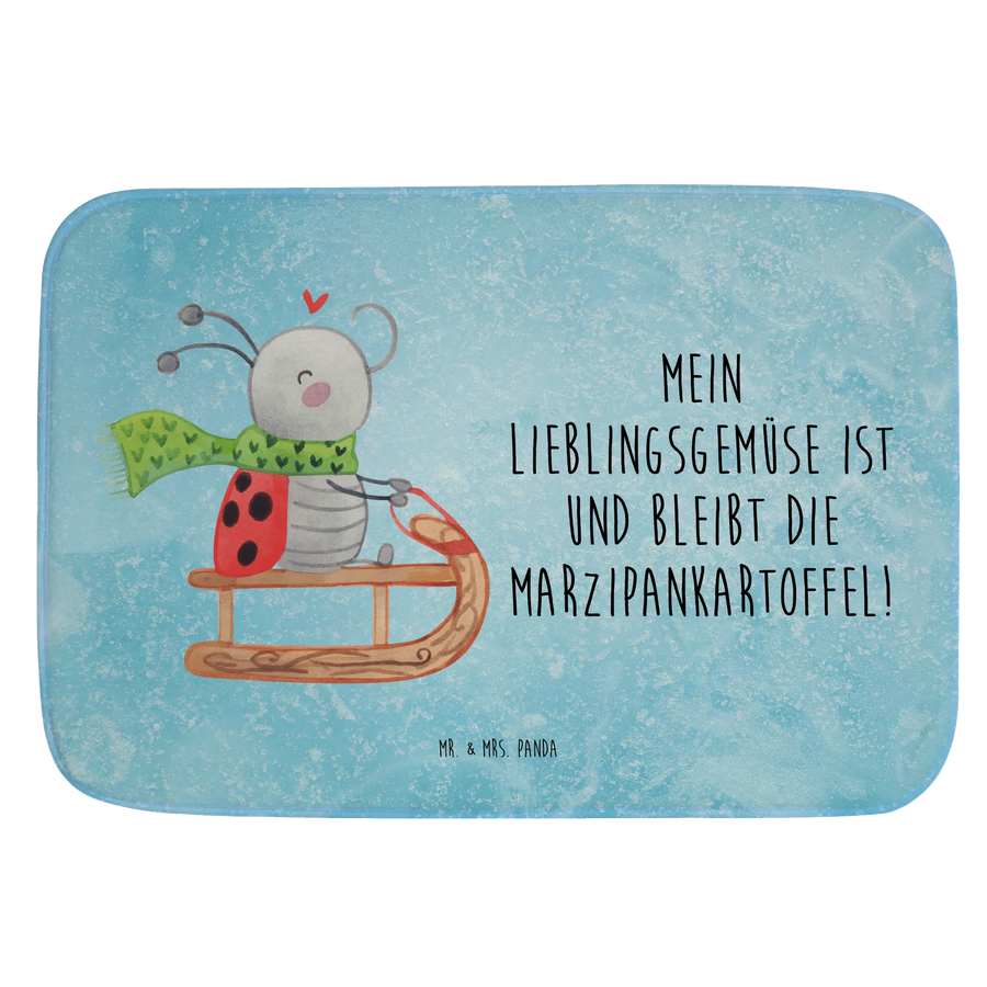 Der perfekte Badvorleger von Mr. & Mrs. Panda ist nicht nur ein wunderbarer Blickfang, sondern auch funktional und angenehm zu nutzen. Mit unserem Badvorleger im bezaubernden Design "Smörle Rodeln" bringst du die Freude des Winters direkt in dein Badezimmer! Der kleine Marienkäfer Smörle, fröhlich mit einem grünen Schal und einem strahlenden Lächeln, lädt dich ein, die winterlichen Abenteuer direkt in deinem Zuhause zu genießen.