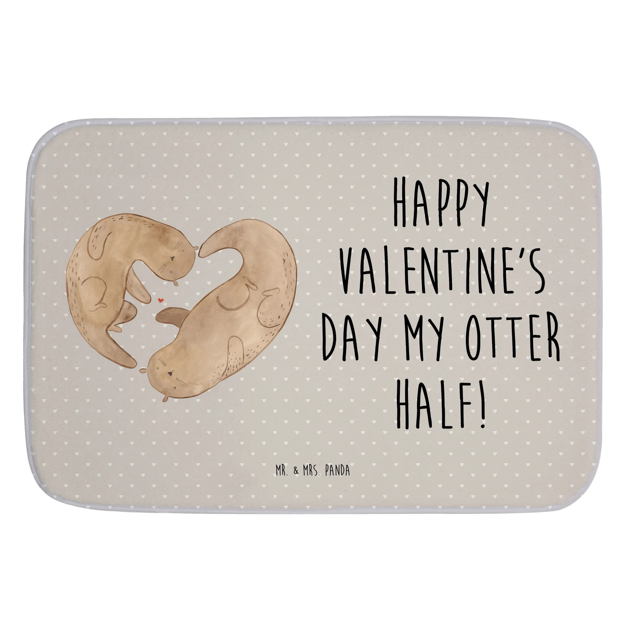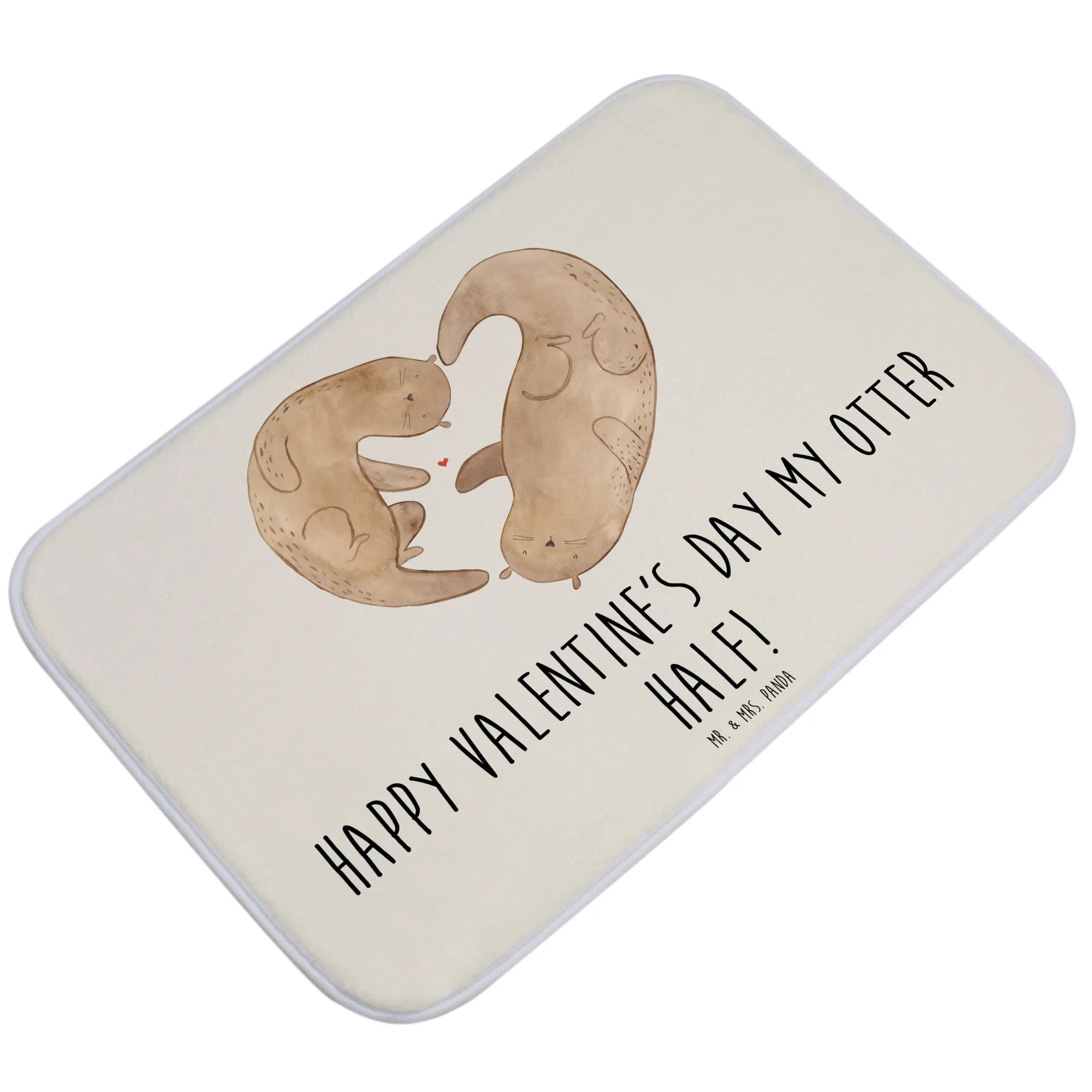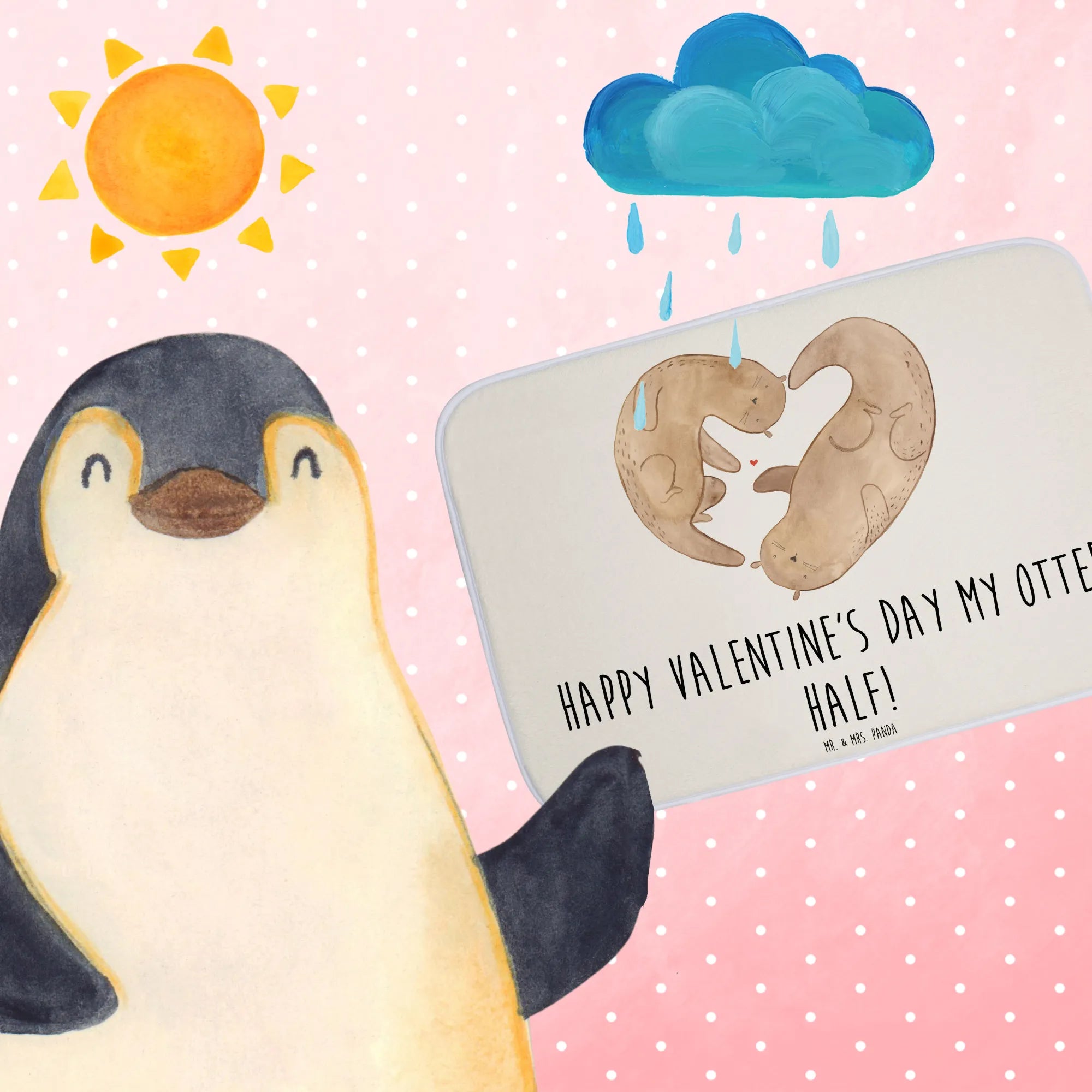 Ein wunderschöner Badvorleger von Mr. & Mrs. Panda: Die Badematte „Otter Valentine" aus der Kollektion Liebe vereint zärtliches Design mit praktischem Nutzen. Zwei Otter, die sich an den Pfoten halten und zusammen ein Herz formen, sowie der Slogan "Happy valentine's day my otter half!" machen diese Matte zum perfekten Liebesgeschenk.