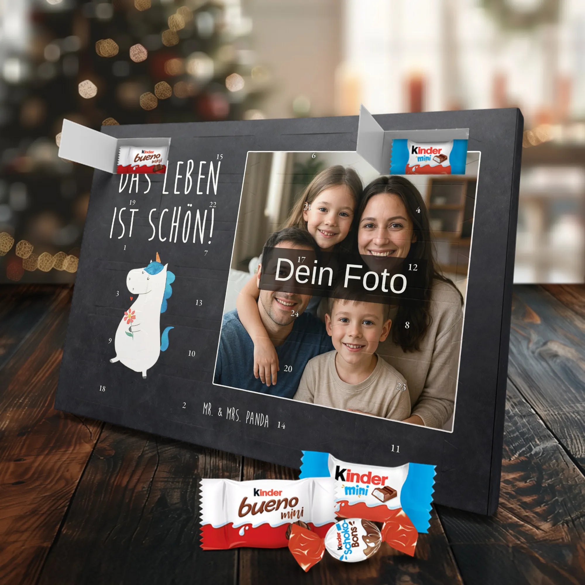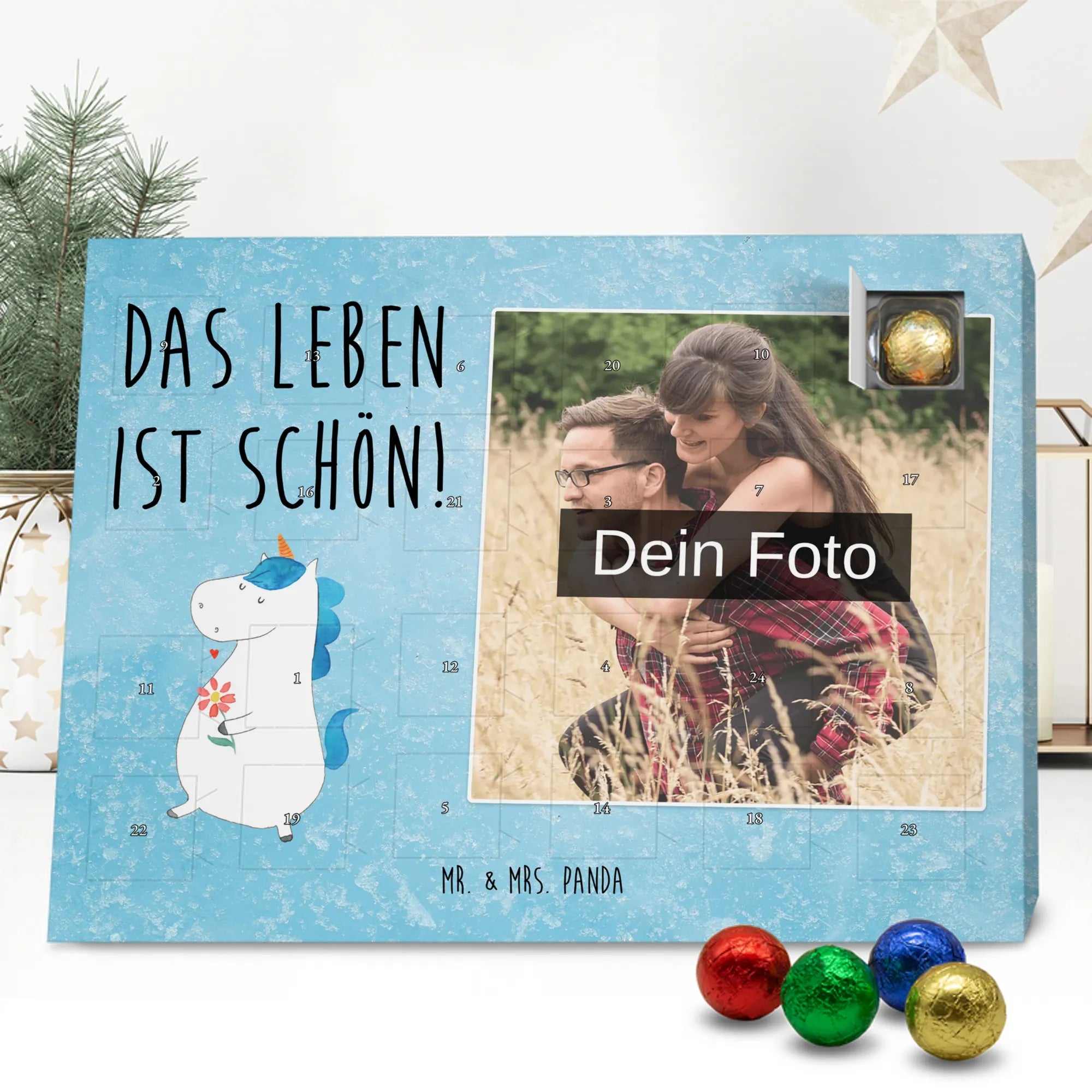 Verschenke zauberhafte Adventsfreude mit unserem Einhorn Adventskalender aus der Einhorn - Kollektion von Mr. & Mrs. Panda. Das süße Einhorn mit einer Blume im Huf macht jeden Adventsmorgen heller und trägt den liebevollen Slogan „Das Leben ist schön!“. Du kannst den Kalender ganz persönlich gestalten, indem du ein eigenes Foto hochlädst — so wird jeder Tag im Dezember zu einem kleinen Erinnerungsstück. 🦄💫