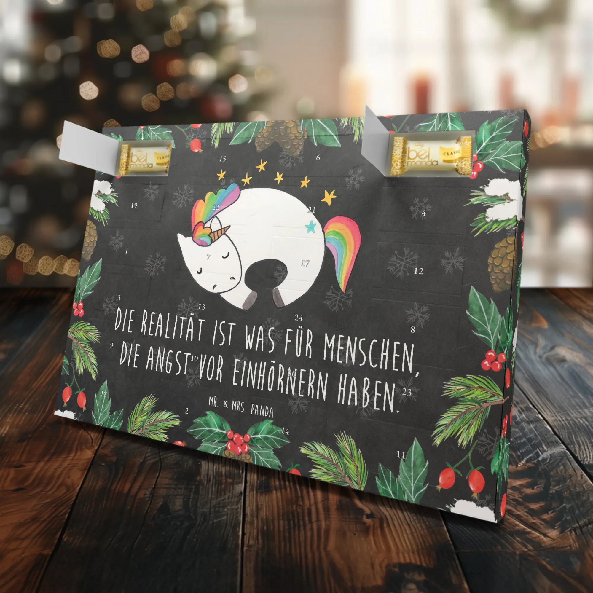 Der wunderschöne Adventskalender ist mit dem zauberhaften Motiv des schlafenden Einhorns bedruckt. Dazu der witzige Spruch: „Die Realität ist was für Menschen, die Angst vor Einhörnern haben.“ – ein perfekter Begleiter durch die besinnliche Zeit. Ideal für jeden, der den Alltagsstress hinter sich lassen möchte, um in die zauberhafte Welt der Einhörner einzutauchen.