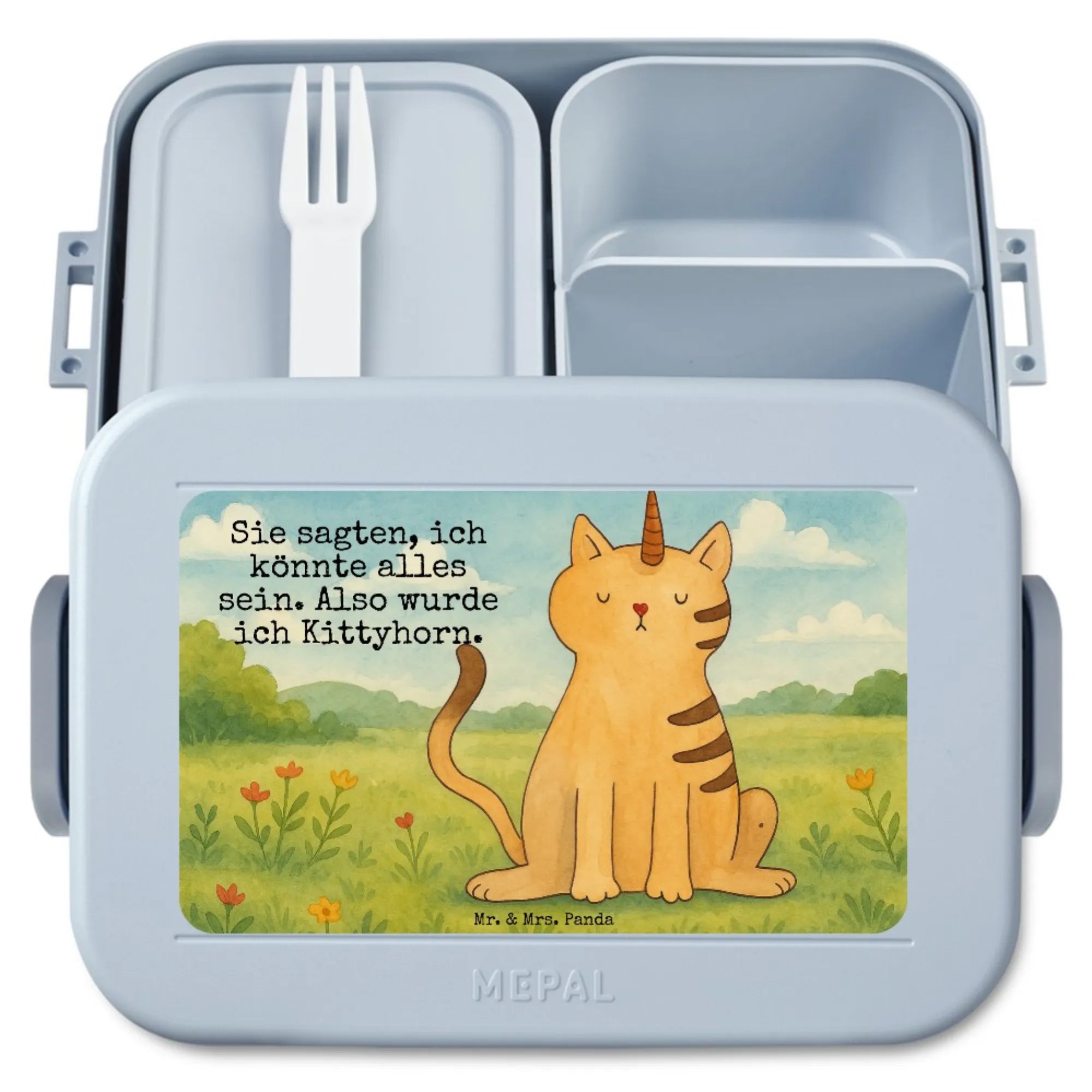 MEPAL Bentobox Einhorn Katze Design - mit Spruch - Blau Pastell