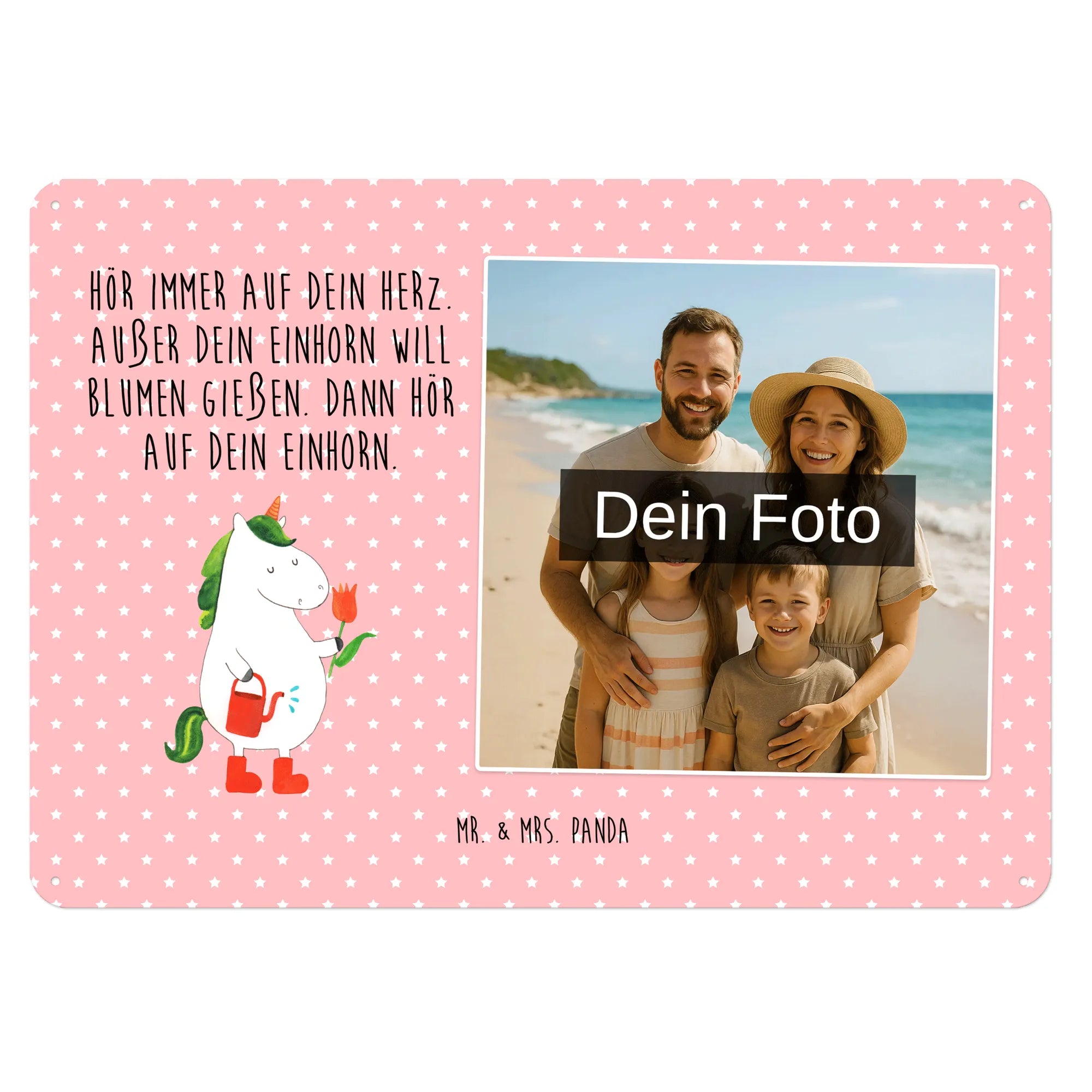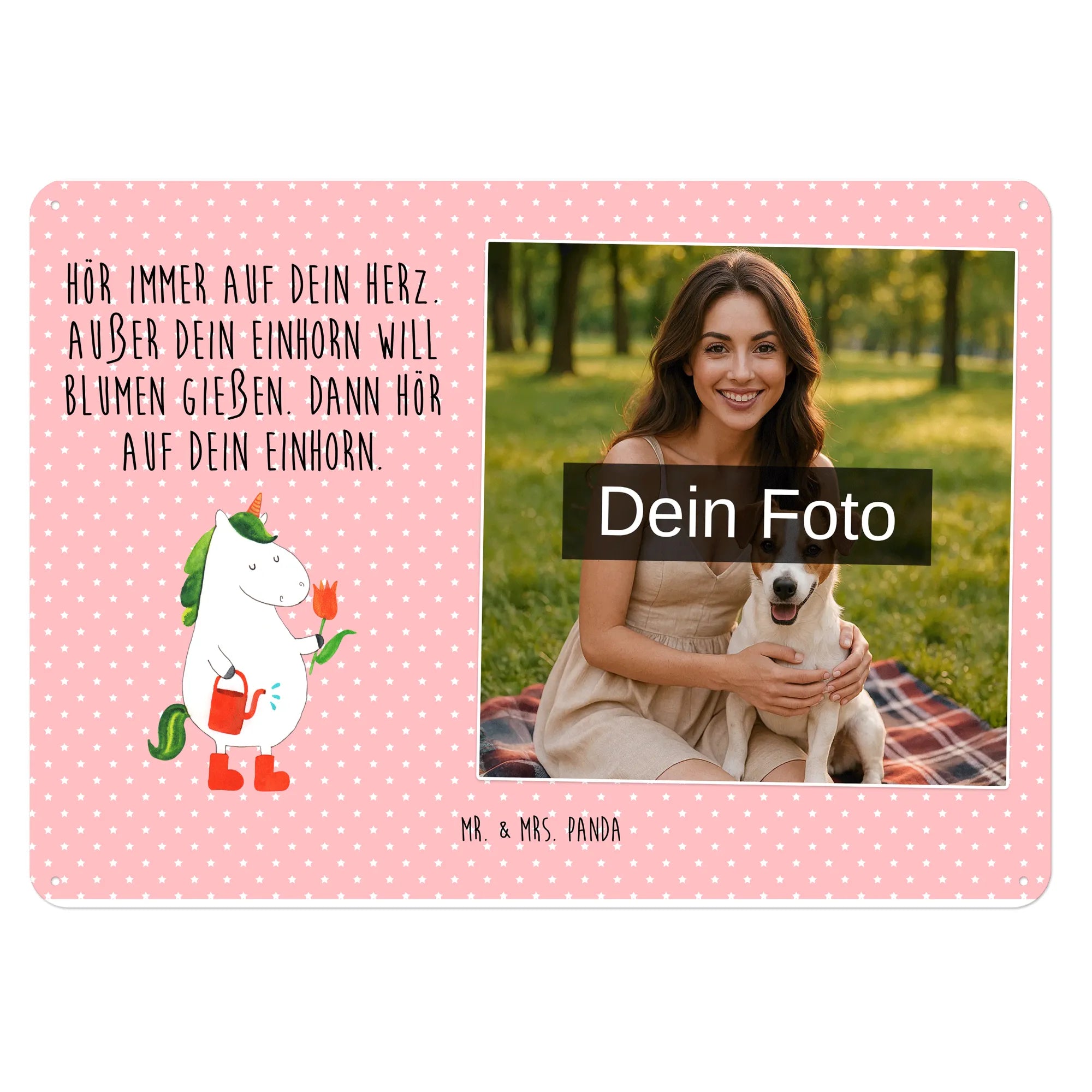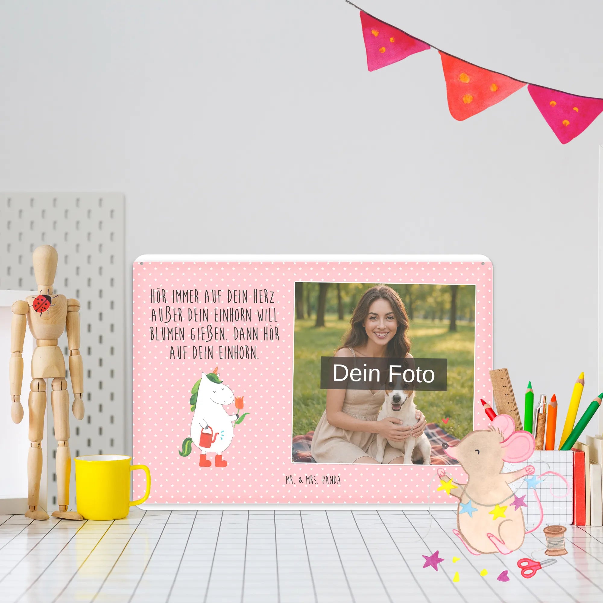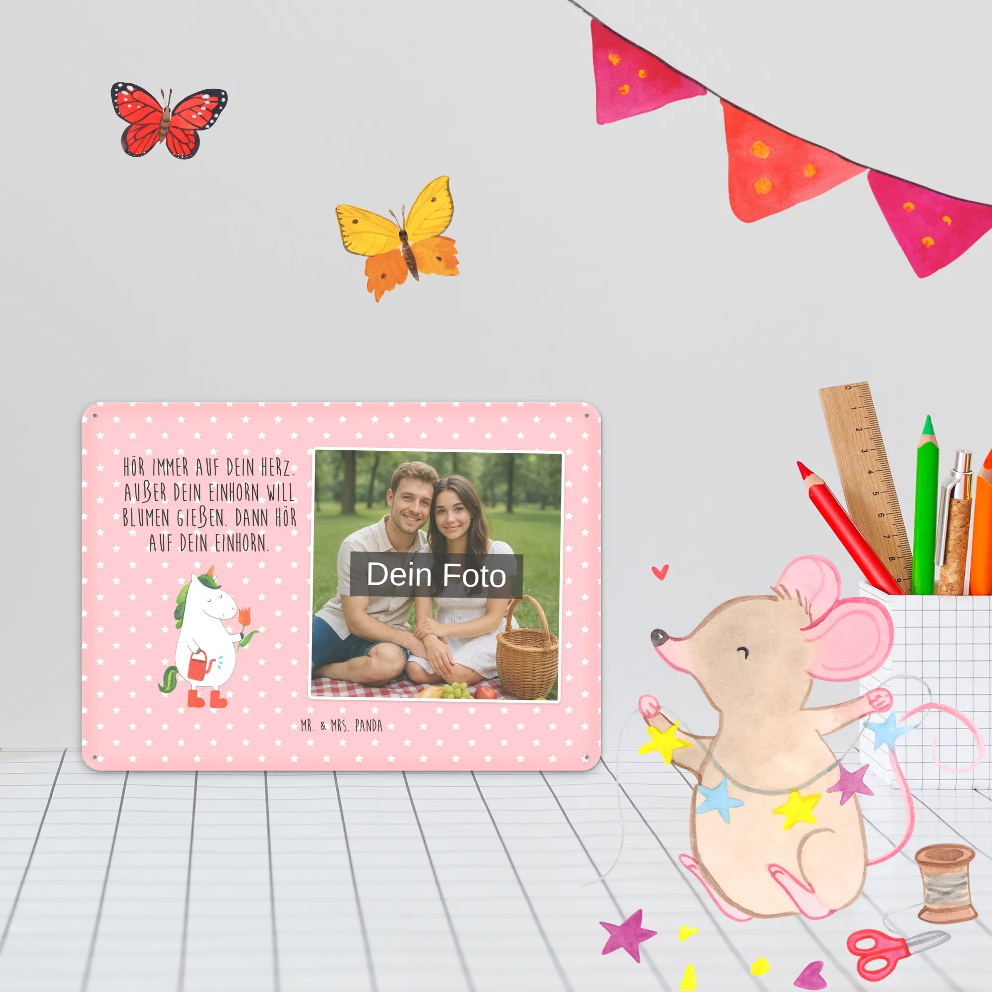 Spersonalizowany metalowy szyld ze zdjęciem jednorożec ogrodnik - DIN A6