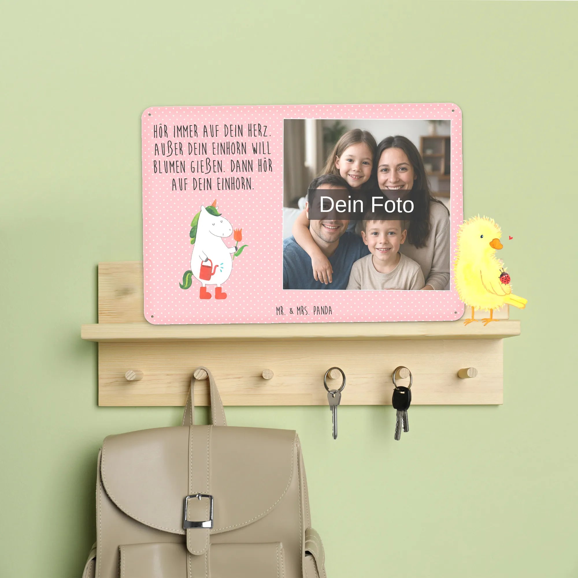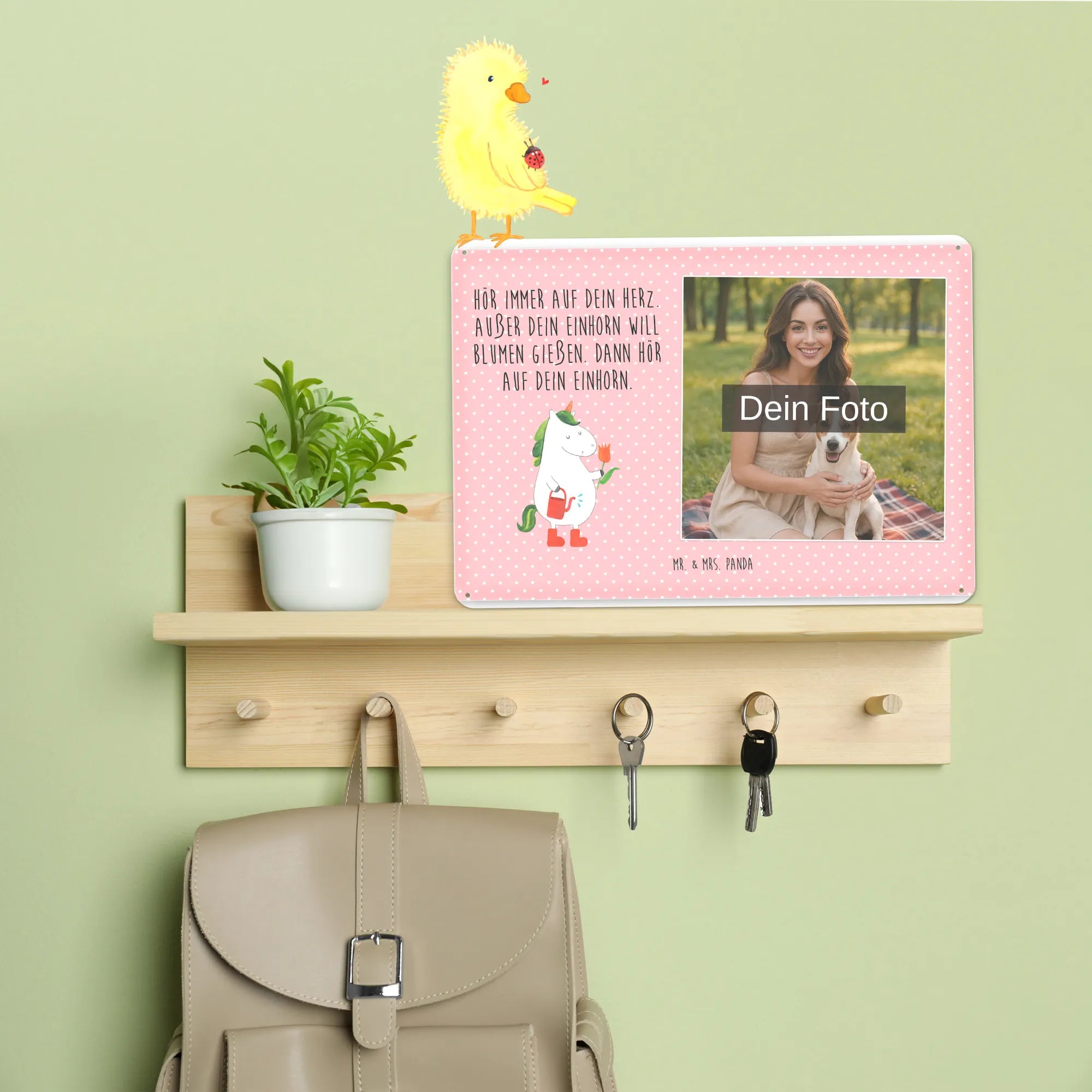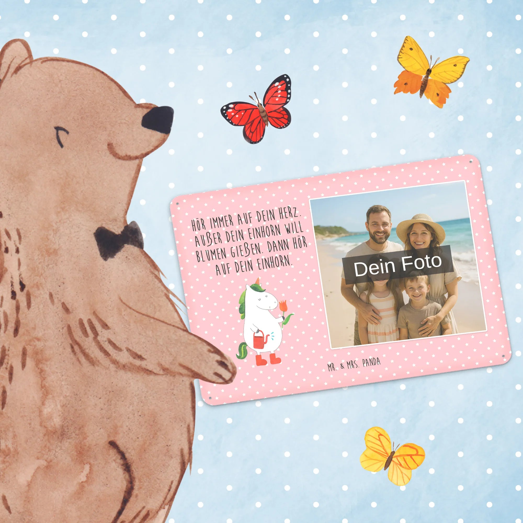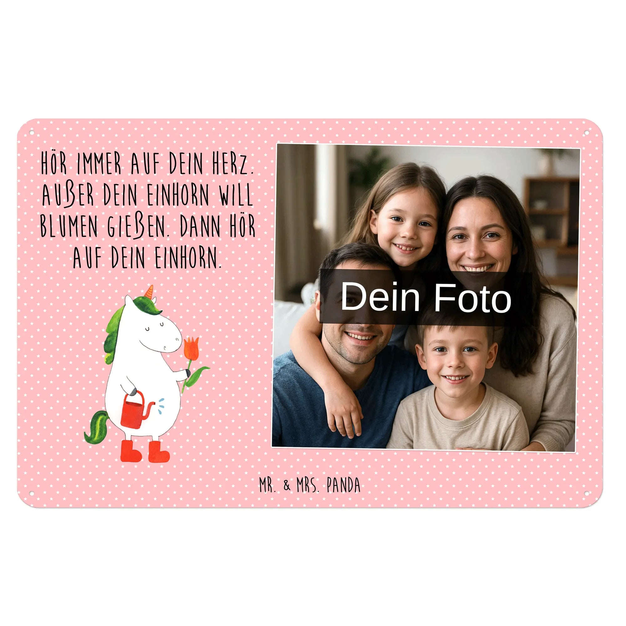Spersonalizowany metalowy szyld ze zdjęciem jednorożec ogrodnik - DIN A6