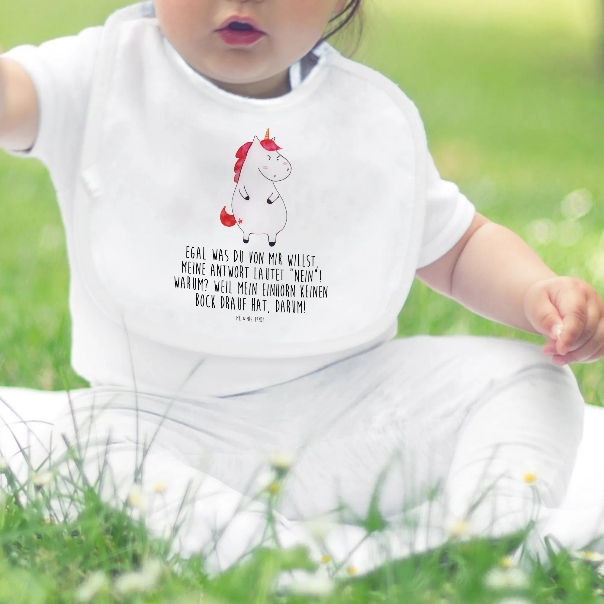 Entdecke das perfekte Babygeschenk mit unserem wütenden Einhorn Babylätzchen aus der Einhorn-Kollektion von Mr. & Mrs. Panda! Dieses zauberhafte Lätzchen vereint Funktionalität und Spaß in einem und macht jede Mahlzeit zu einem witzigen Erlebnis. Das wütende Einhorn mit dem Spruch: 'Egal was du von mir willst, meine Antwort lautet "Nein"!' sorgt nicht nur für Lacher, sondern zeigt auch, dass schon die Kleinsten ihren eigenen Kopf haben können. Perfekt für die Babyparty oder als Geschenk zur Geburt, die praktische Lätzchen schützen die Kleidung deines kleinen Lieblings vor all den aufregenden Essensabenteuern. Warum ist dieses Lätzchen das perfekte Geschenk? Weil es nicht nur hübsch aussieht, sondern auch aus 100% Bio-Baumwolle hergestellt ist. So ist es besonders sanft zur empfindlichen Babyhaut und schont die Umwelt. Die wütenden Einhörner bringen Freude ins Kinderzimmer und machen jede Essenszeit zu etwas Besonderem – auch wenn das Baby mal nicht mitmachen möchte! Ob für Eltern, die das Besondere suchen, oder als lustige Überraschung für eine Babyparty, mit diesem Spucktuch liegst du genau richtig. Schenke Freude und Lachen mit unserem Einhorn Lätzchen – ein Muss für jede Babyausstattung! Und denk daran, mit einem solchen Geschenk zeigst du nicht nur, dass du an das Baby gedacht hast, sondern auch an die frisch gebackenen Eltern. Ergänze das Geschenk mit anderen tollen Einhorn-Produkten aus unserer Kollektion für ein unvergessliches Set. Jedes Lätzchen wurde mit viel Liebe zum Detail designed und in hochwertiger Qualität gefertigt. Das lässige Design und der witzige Spruch machen diesen Babylatz zu einem echten Hingucker, egal ob zu Hause oder unterwegs. Perfekt für die ersten festen Nahrungsmittel oder als schickes Accessoire bei jedem Essen. Lass dein Baby schon früh zeigen, dass es einen starken Willen hat - ganz in Einhorn-Manier! Hier die Vorteile im Überblick:
