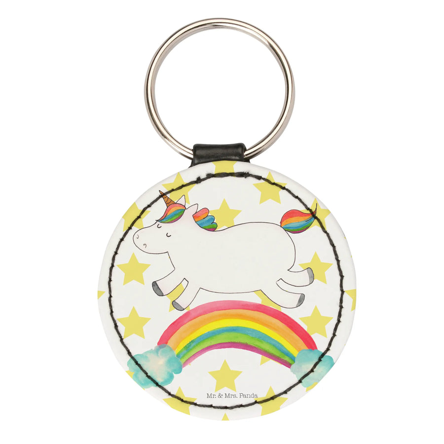 Okrągły brelok jednorożec tęcza - Biały