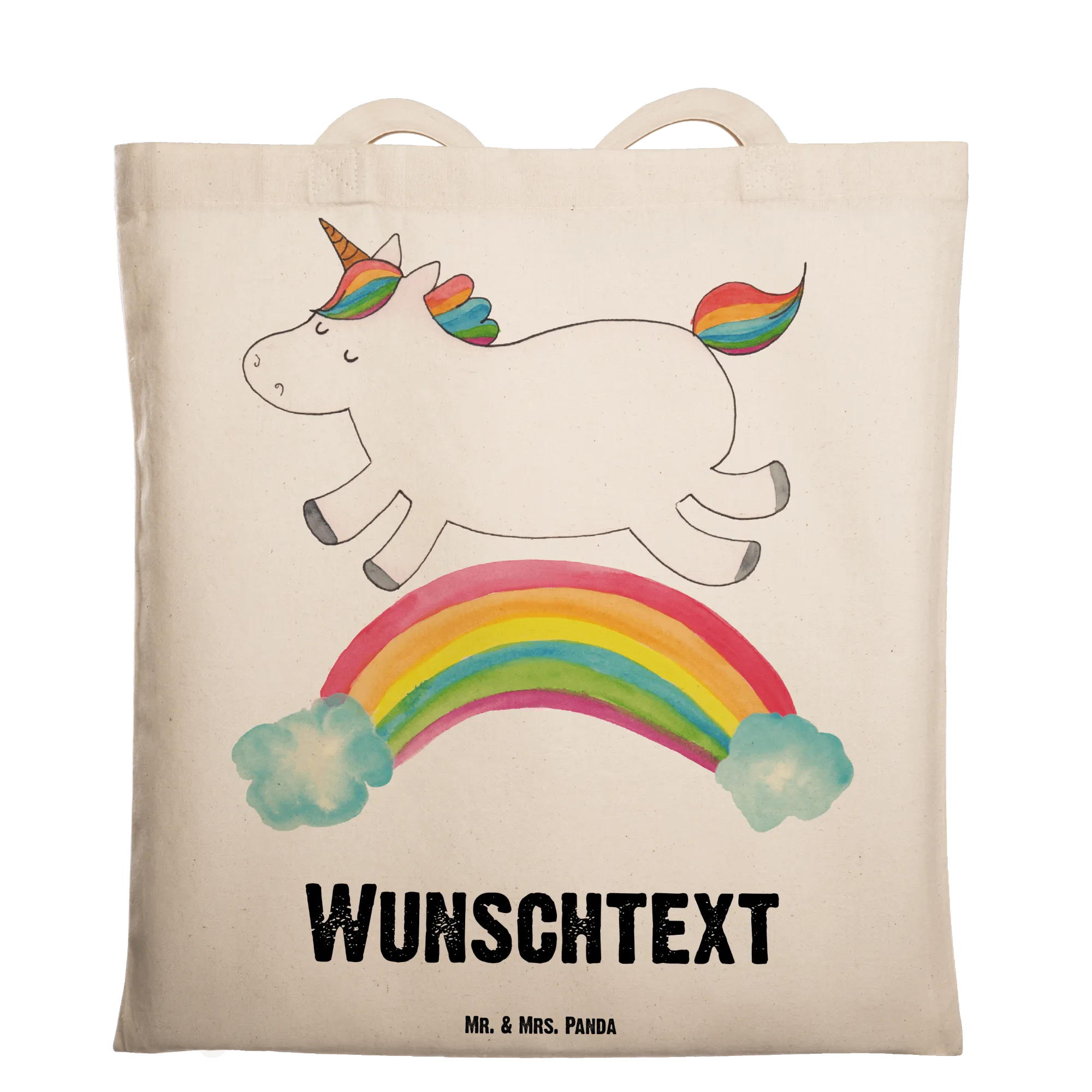 Die personalisierte Tragetasche Einhorn Regenbogen von Mr. & Mrs. Panda ist der ideale Wegbegleiter für alle, die die zauberhafte Welt der Einhörner lieben. Diese hochwertige Tragetasche begeistert nicht nur durch ihr niedliches Design, sondern auch durch ihre Funktionalität.