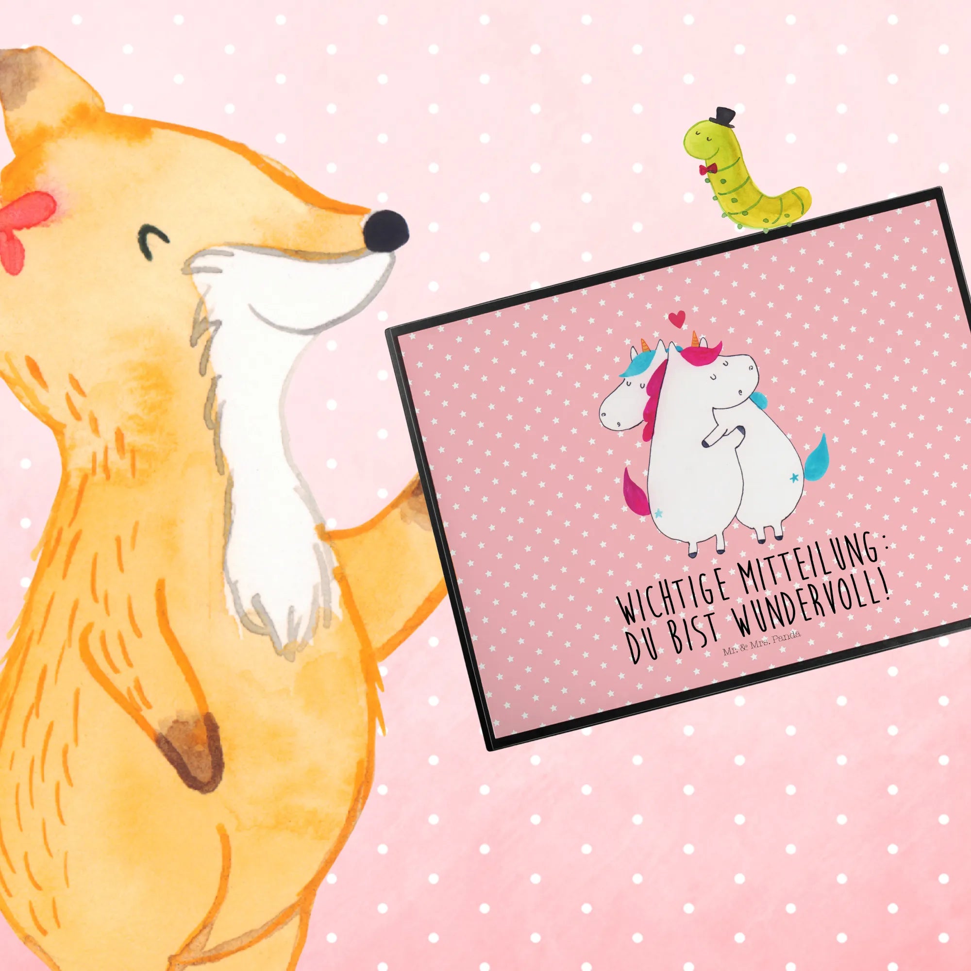 Podkładka na biurko jednorożec Wiadomość - z napisem - Pastelowy czerwony