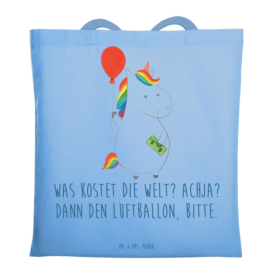 Suchst du eine Tasche mit Charakter? Unsere Tragetasche „Einhorn Luftballon“ aus der Einhorn - Kollektion von Mr. & Mrs. Panda verbindet verspielte Illustration mit praktischer Alltagstauglichkeit. Das liebevoll handgezeichnete Einhorn hält einen Luftballon und ein paar Geldscheine – begleitet vom frechen Spruch „Was kostet die Welt? Achja? Dann den Luftballon, bitte.“ 🎈