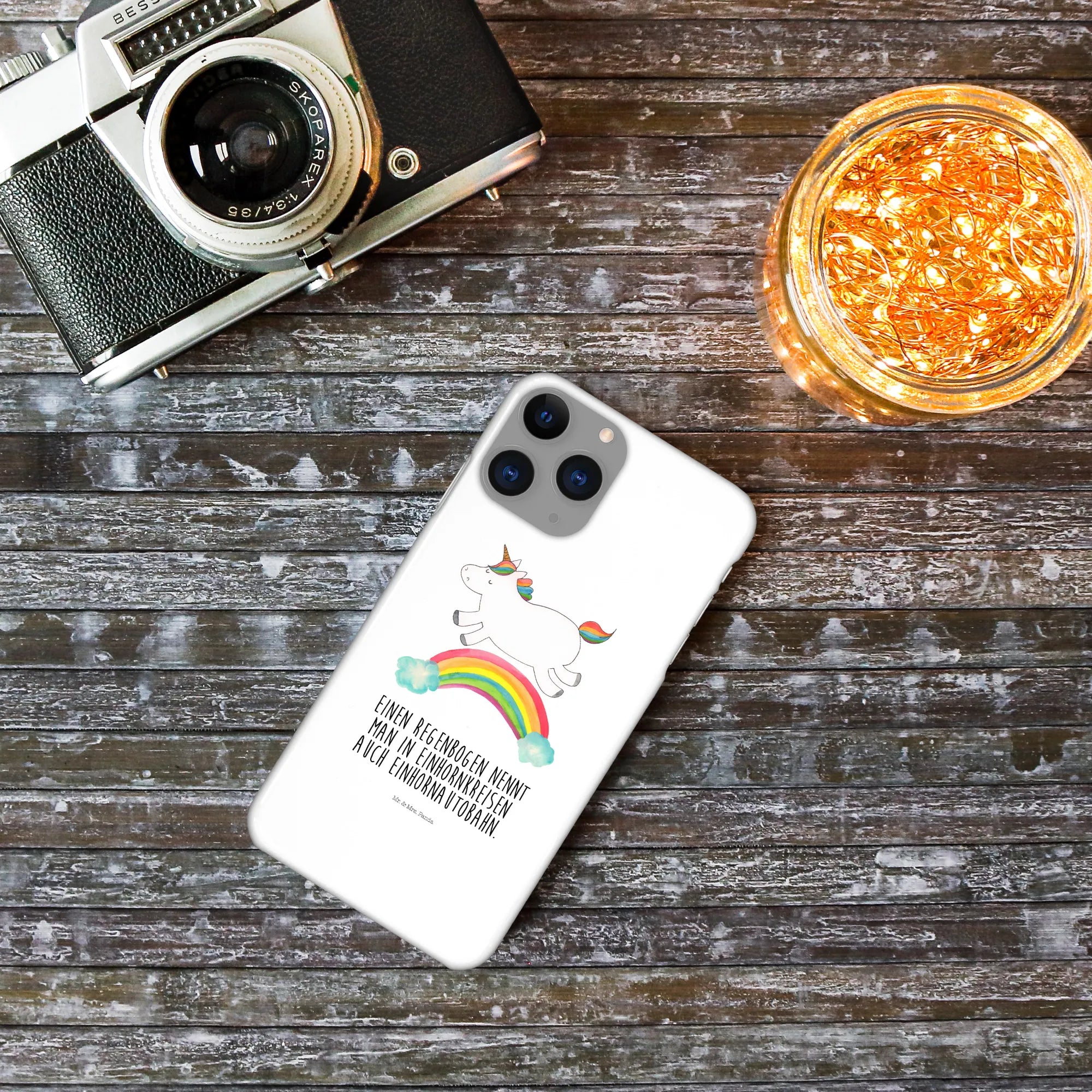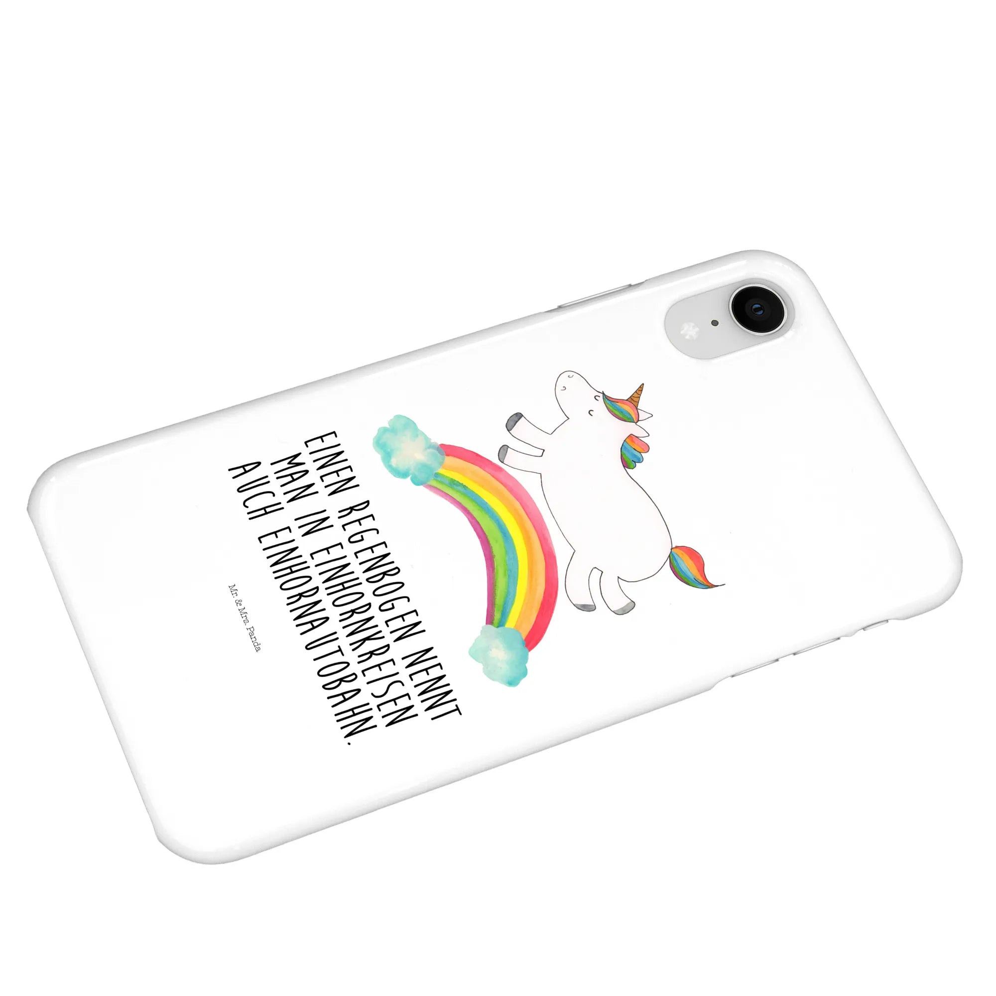 Etui na iPhone 10 jednorożec tęcza - Iphone 10 Handyhülle - z napisem - biały