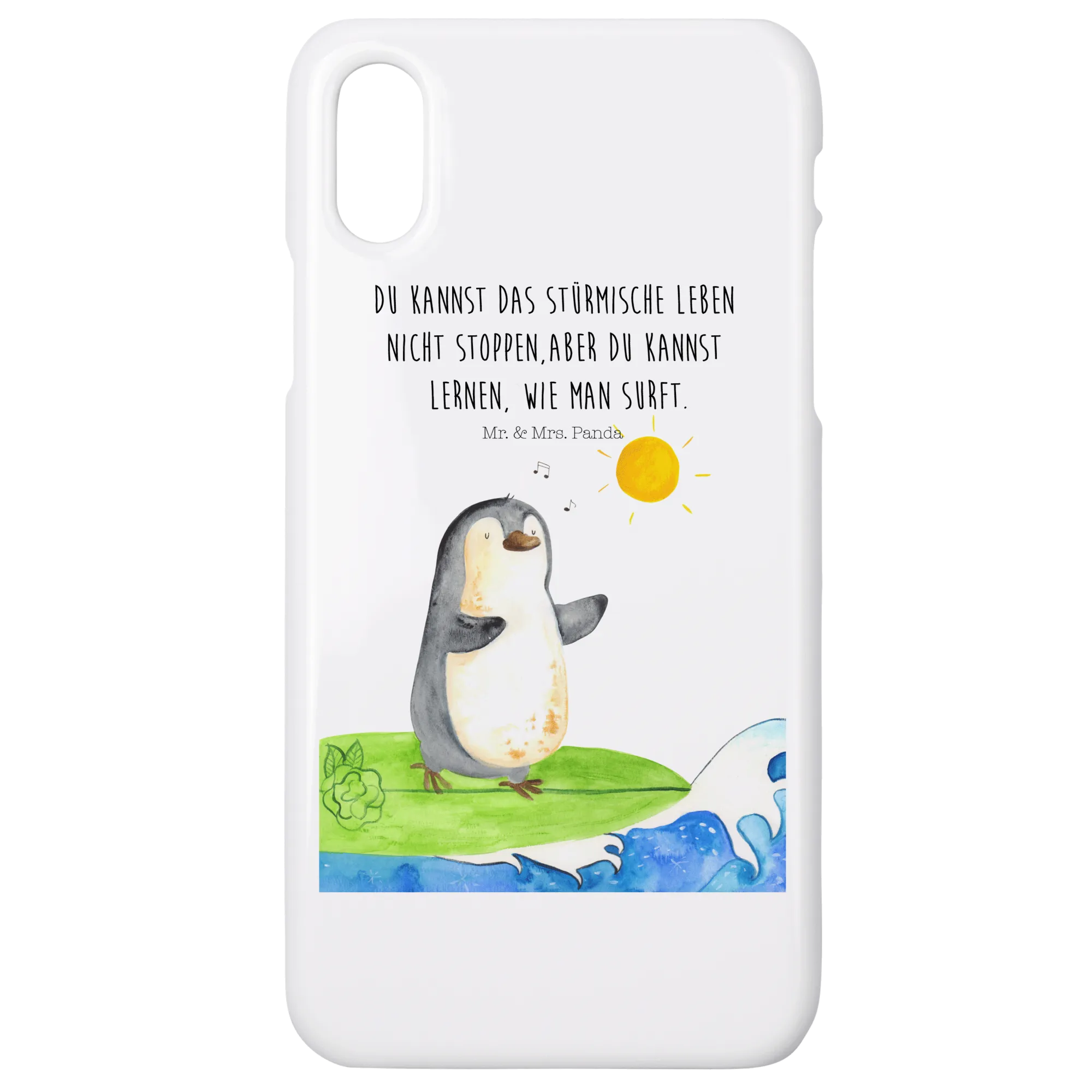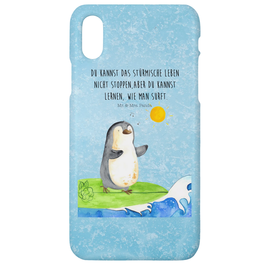 Etui na iPhone 10 Pingwin surfista - Iphone 10 Handyhülle - z napisem - Eisblau