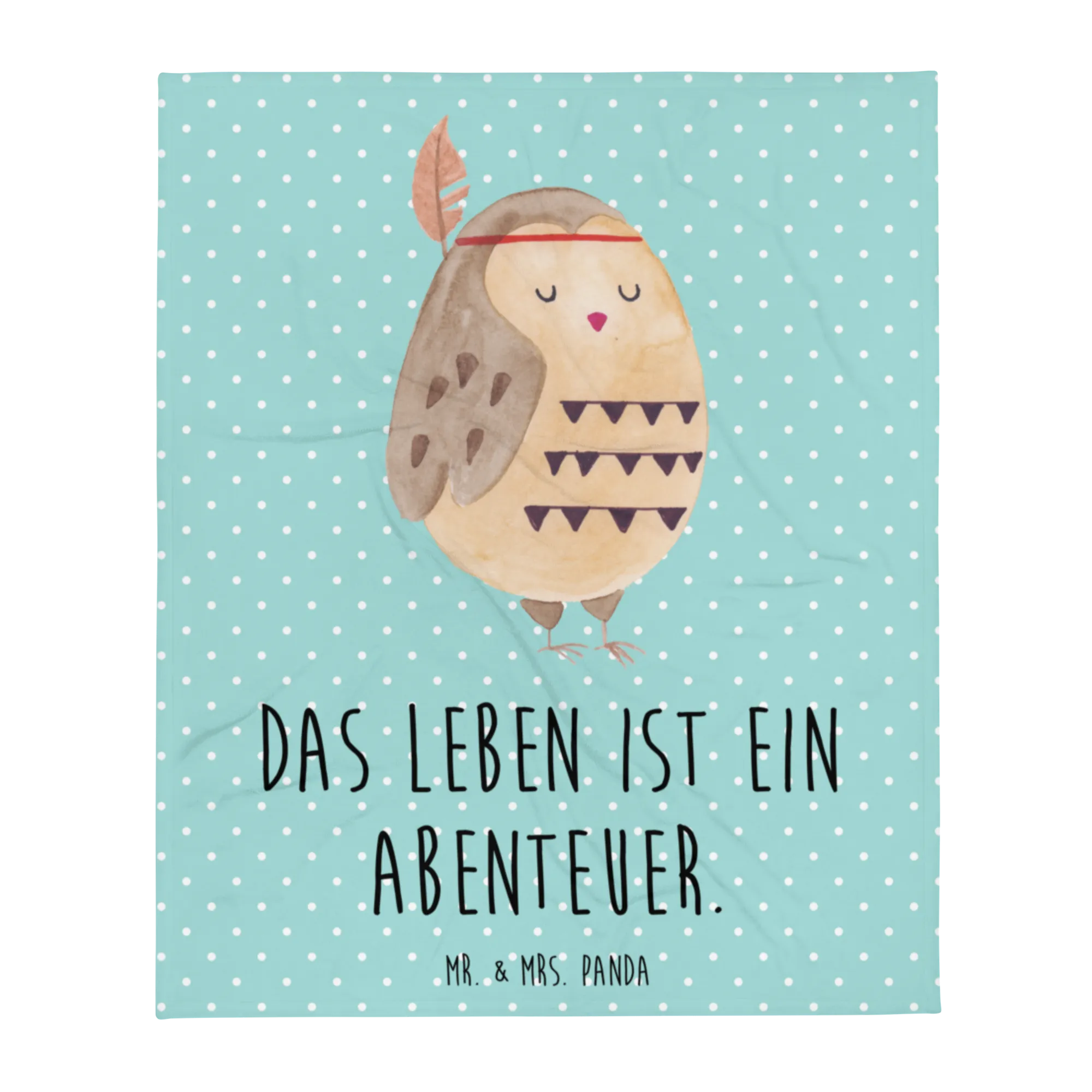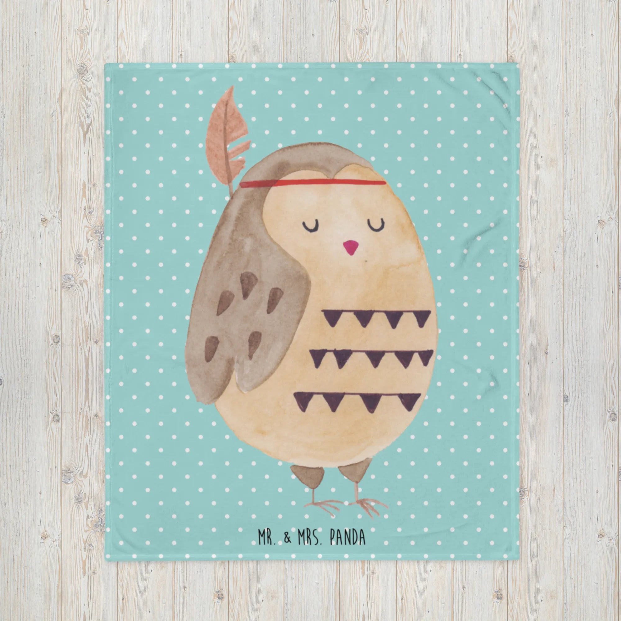 Koc sowa Ozdoba z piór - z napisem - pastelowy turkus