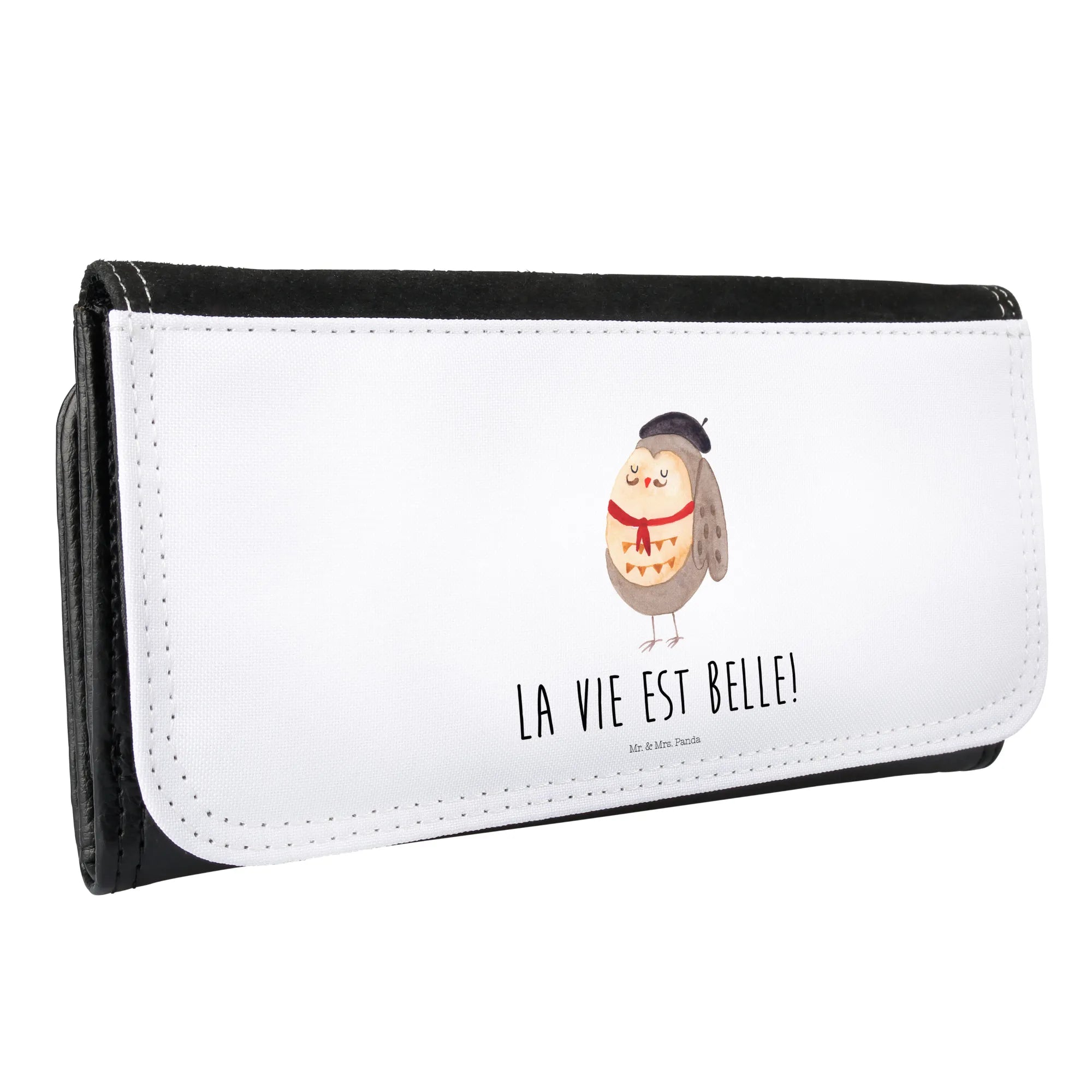Portfel damski sowa Francja - z napisem - biały