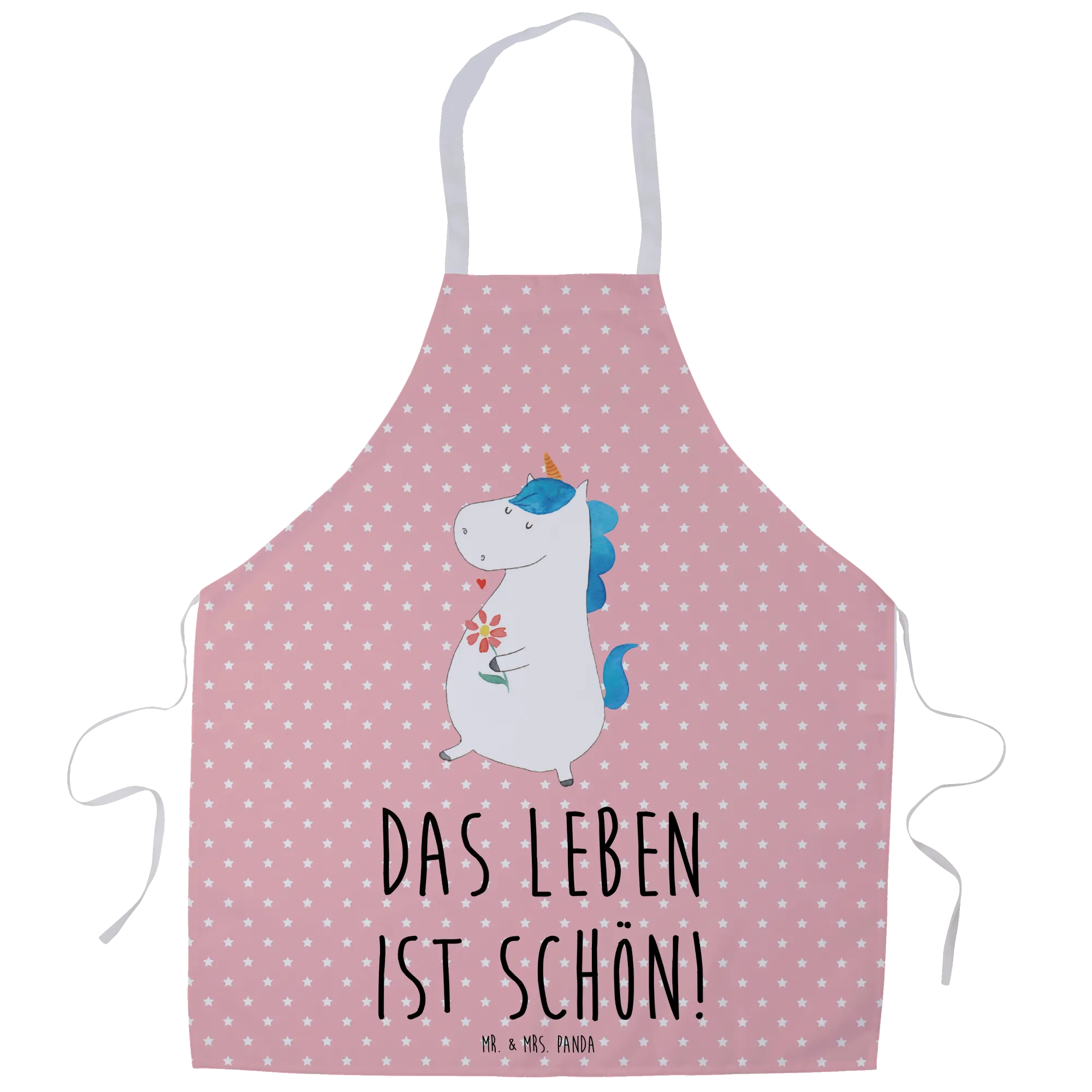 Fartuch kuchenny Jednorożec spacer - z napisem - Pastelowy czerwony