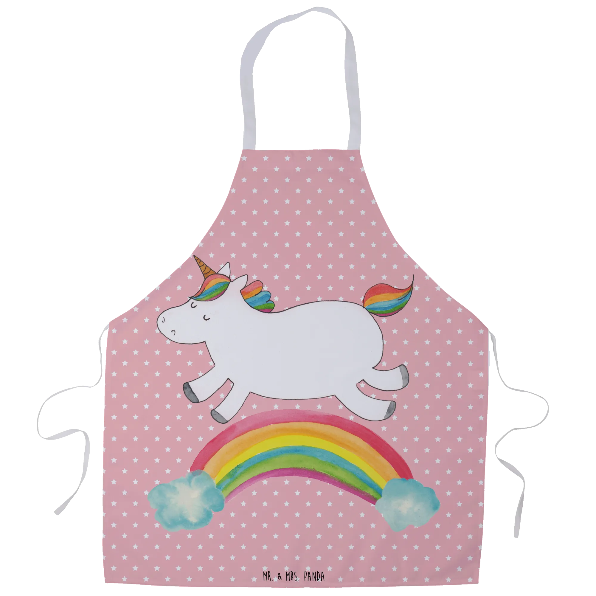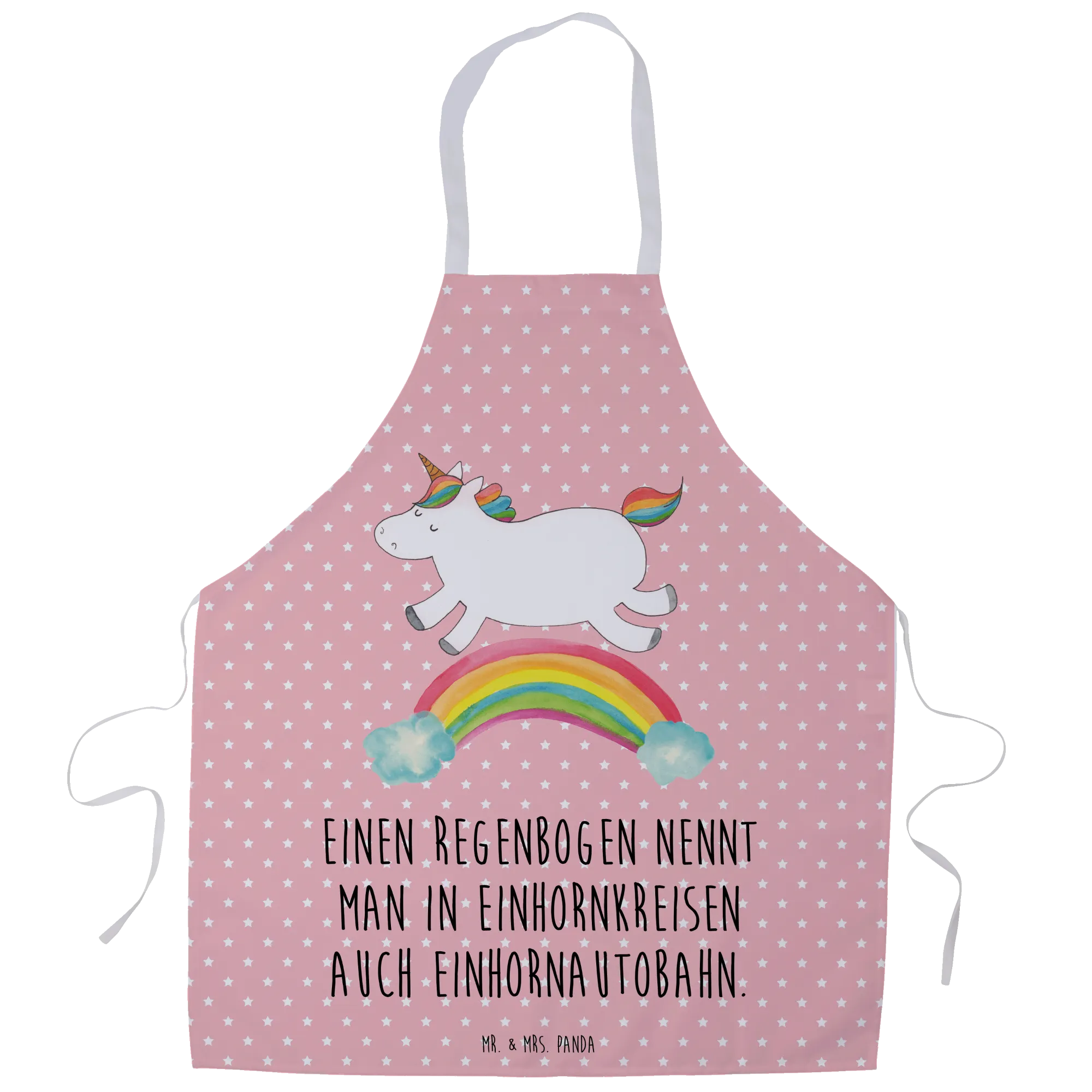 Fartuch kuchenny jednorożec tęcza - z napisem - Pastelowy czerwony