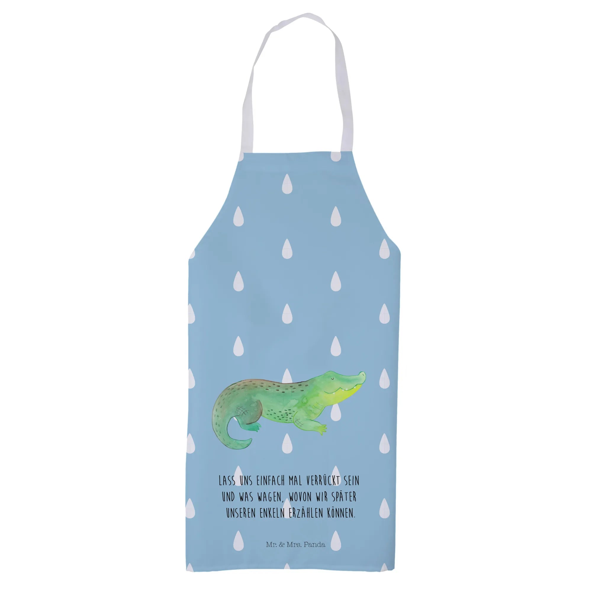 Fartuch kuchenny Krokodyl - z napisem - Pastelowy niebieski