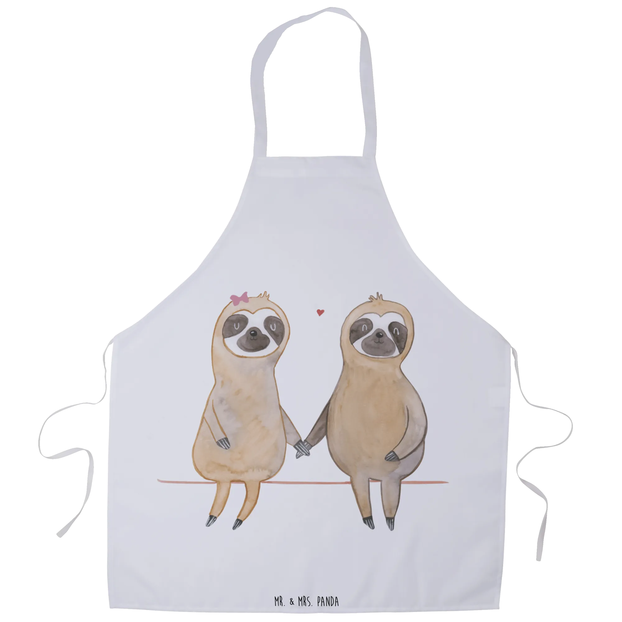 Fartuch kuchenny leniwiec para - z napisem - biały