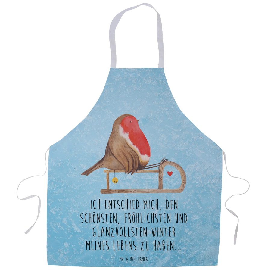 Fartuch kuchenny rudzik sanki - z napisem - lodowoniebieski