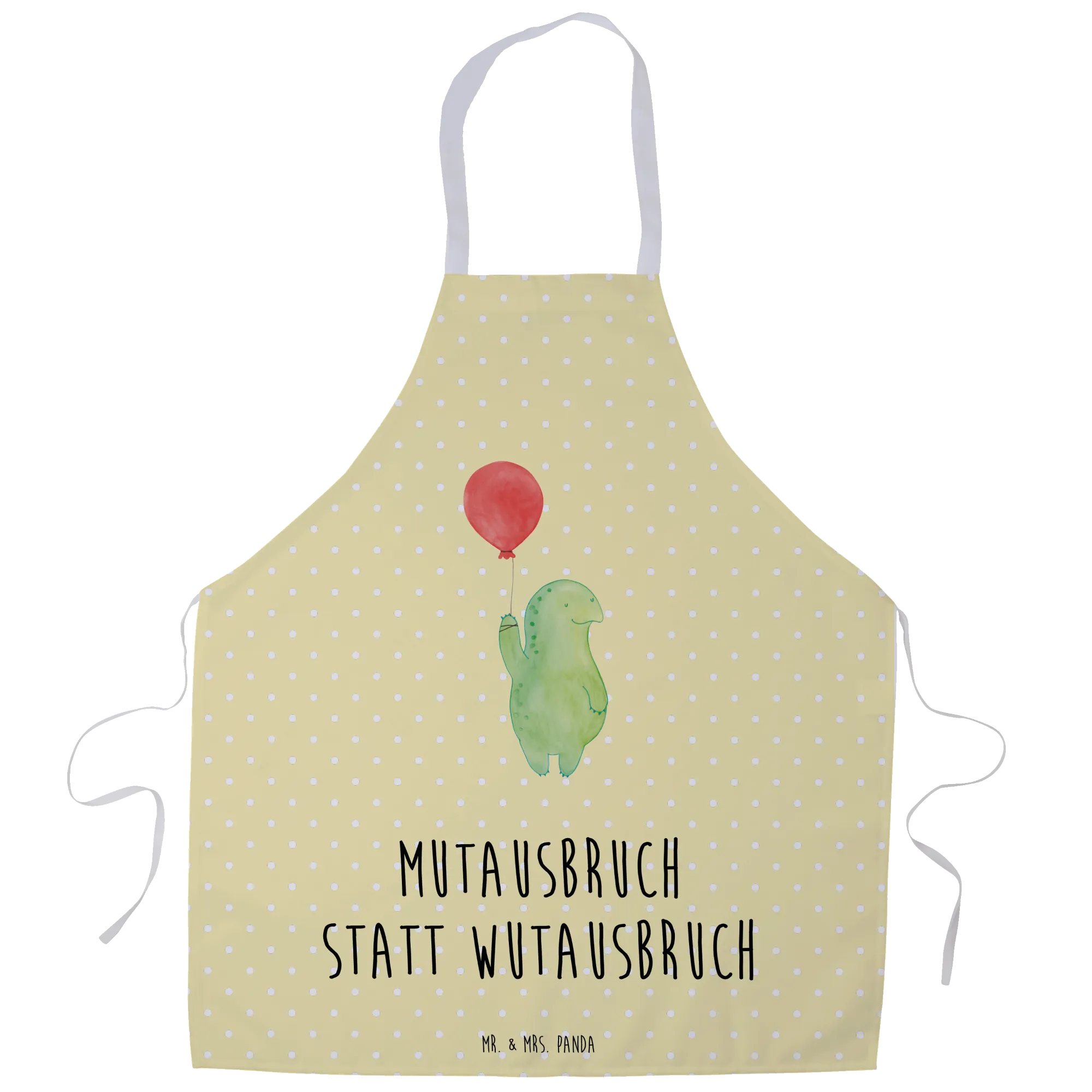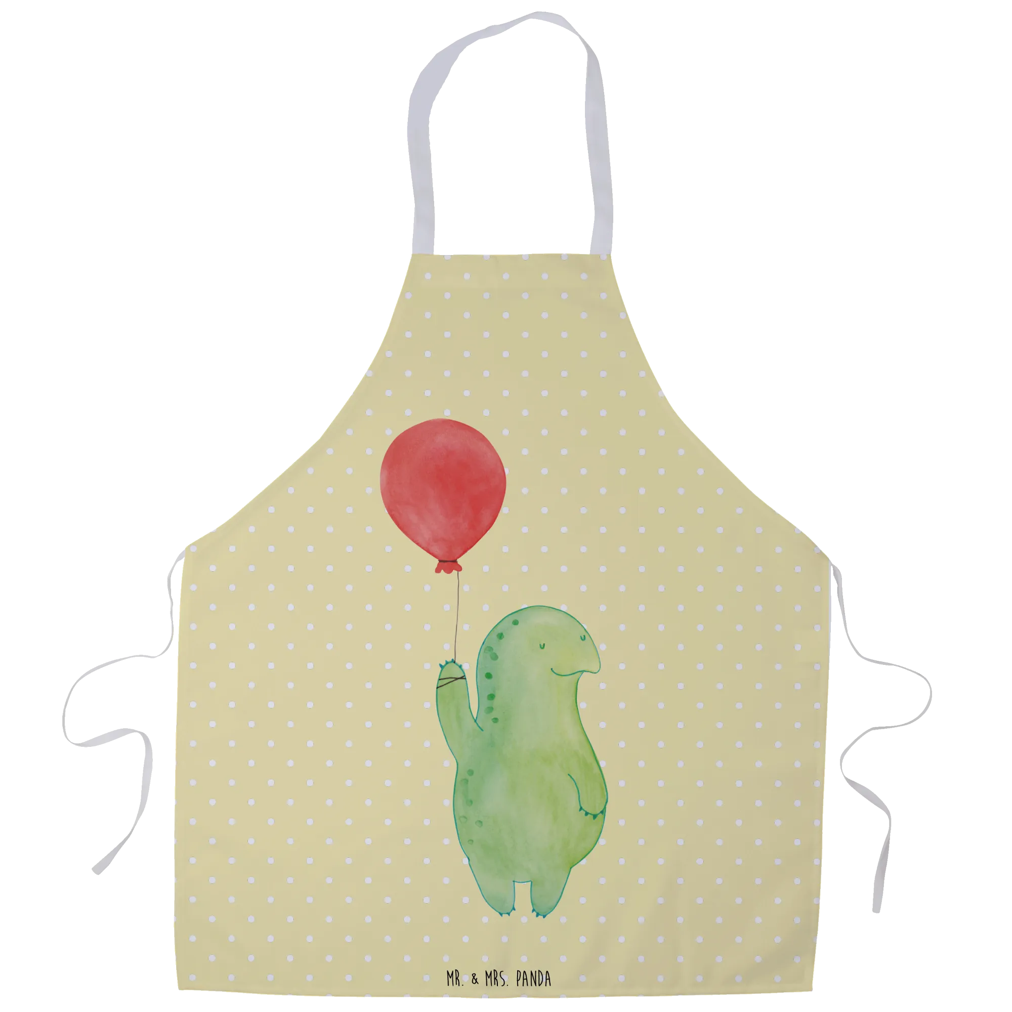 Fartuch kuchenny żółw balon - z napisem - Pastelowy żółty