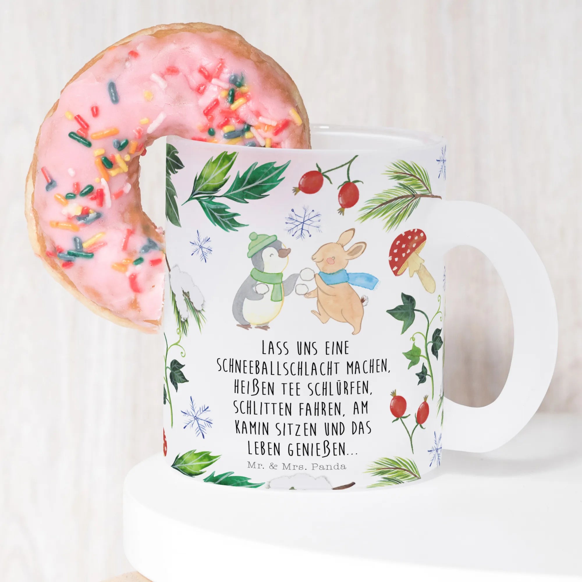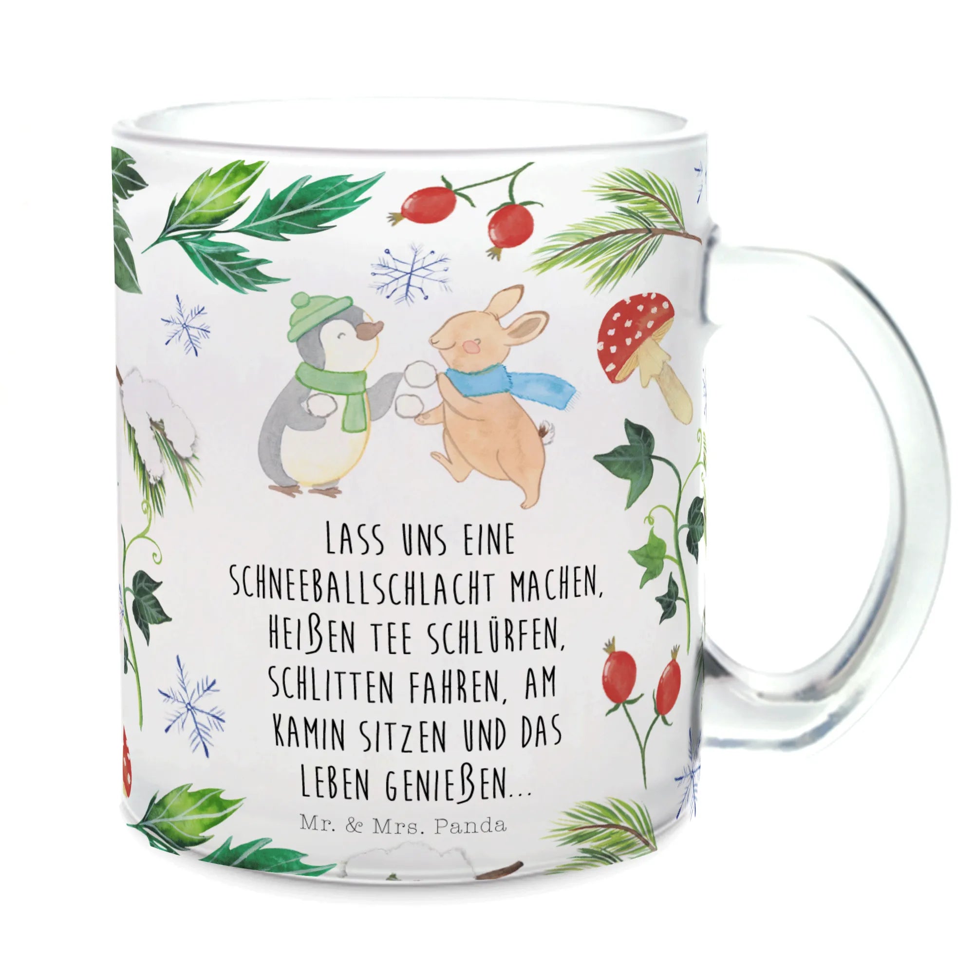 Filiżanka do herbaty Pingwin królik Bitwa na śnieżki - z napisem