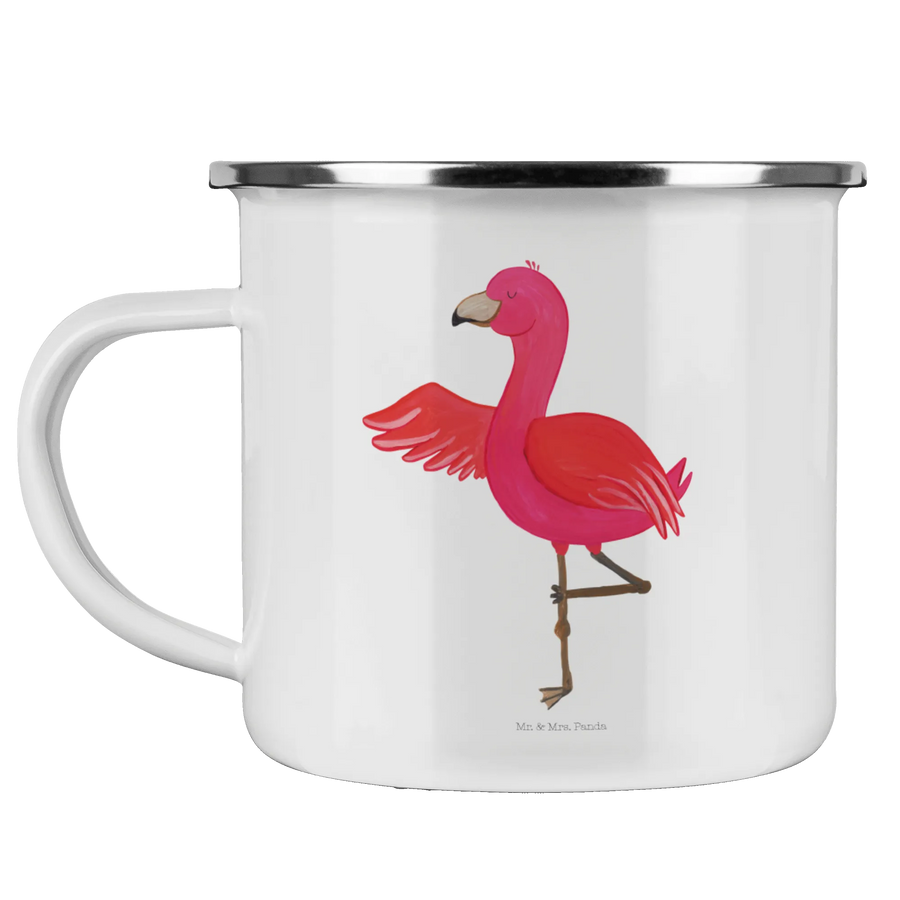 Kempingowy kubek emaliowany Flamingo joga - bez napisu - Biały