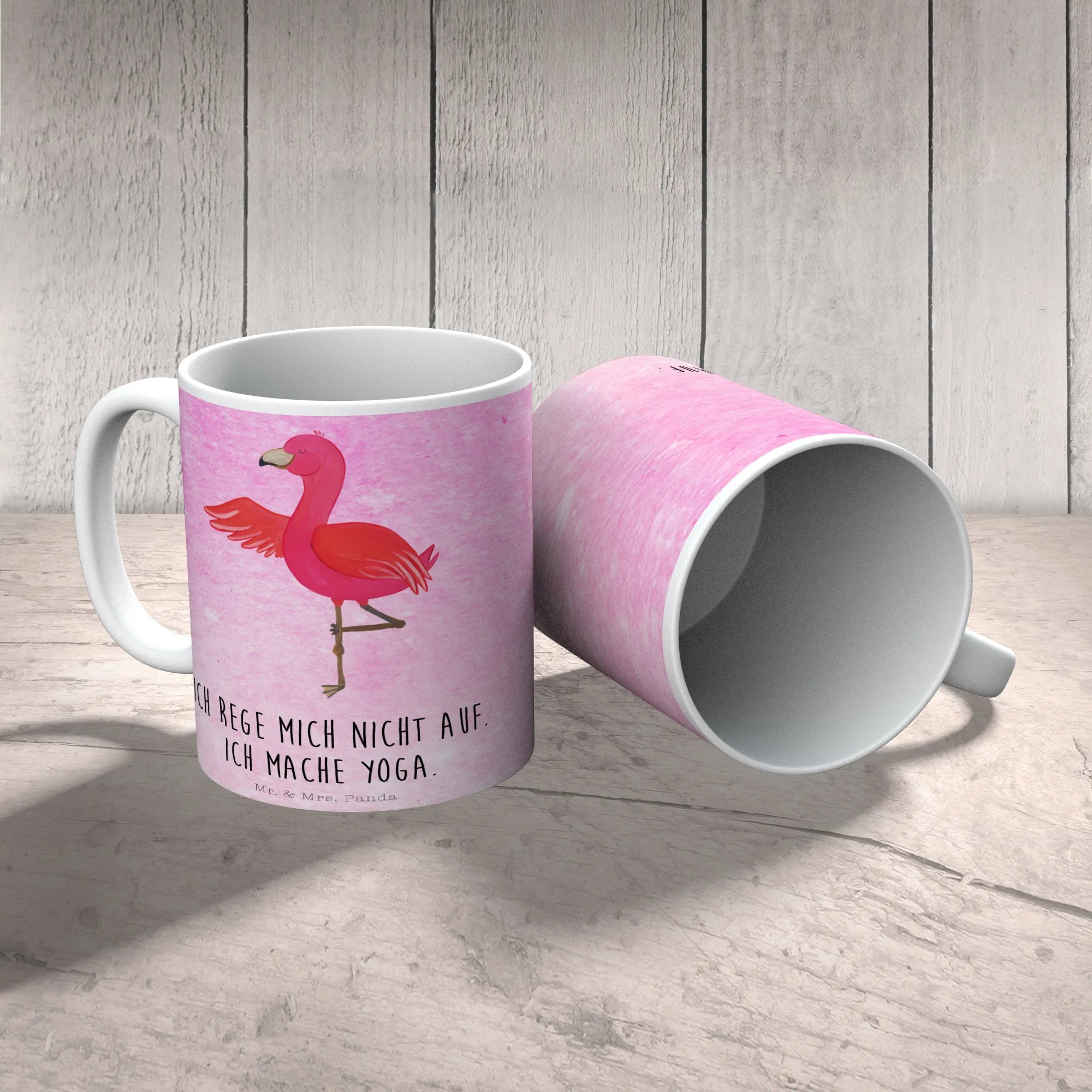 Kubek Flamingo joga - z napisem - Ceramika - Akwarelowy róż