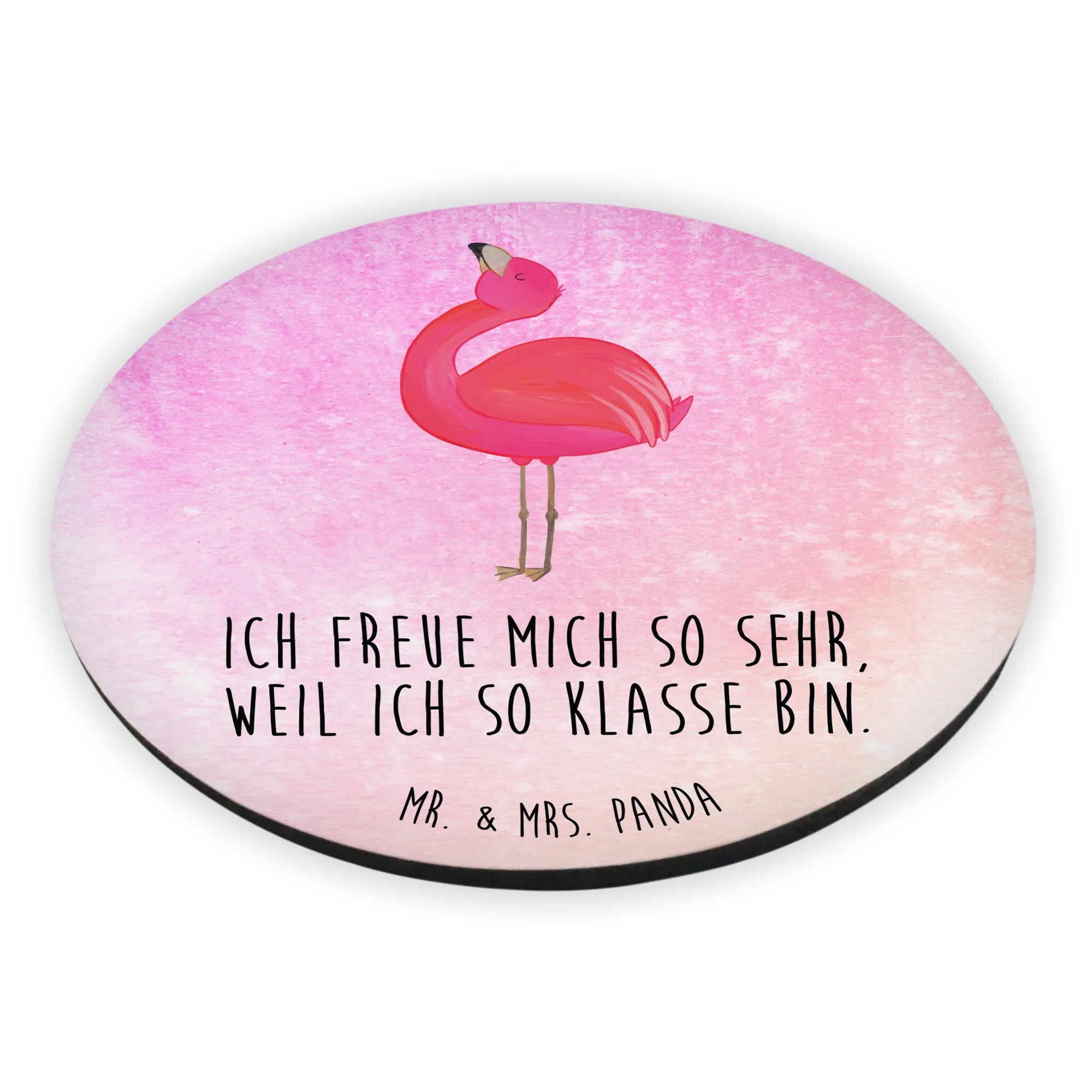 Okrągły magnes Flamingo Duma - z napisem - biały