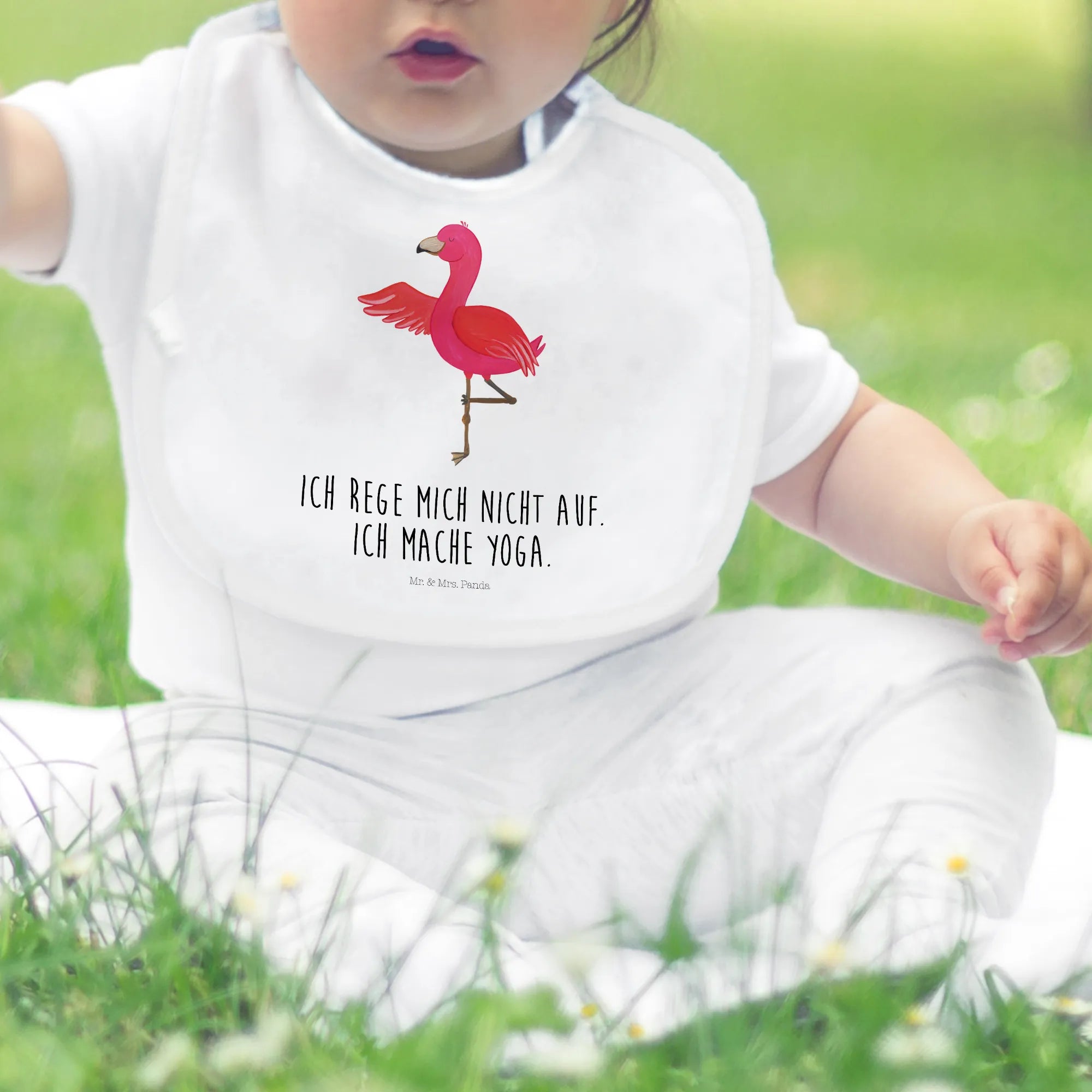 Die pinke Farbgebung des Flamingos und das lustige Motiv, das einen Flamingo in entspannter Yoga-Pose zeigt, bringen Freude und gute Laune auf den Tisch! Mit dem Spruch 'Ich rege mich nicht auf. Ich mache Yoga.' animiert es kleine Eltern dazu, Gelassenheit und Achtsamkeit beim Füttern ihrer Babys zu praktizieren. Ob beim Brei oder beim Fläschchen – mit diesem praktischen Sabberlätzchen bleibt die Kleidung stets sauber und die Stimmung fröhlich.