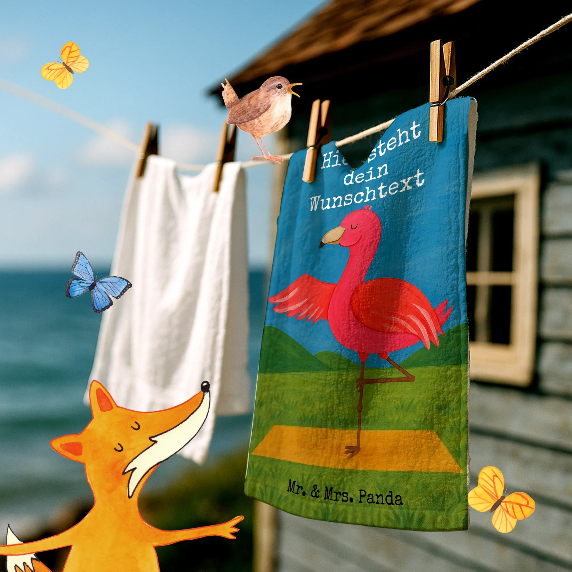 Personalisiertes Gästehandtuch Flamingo Yoga Design