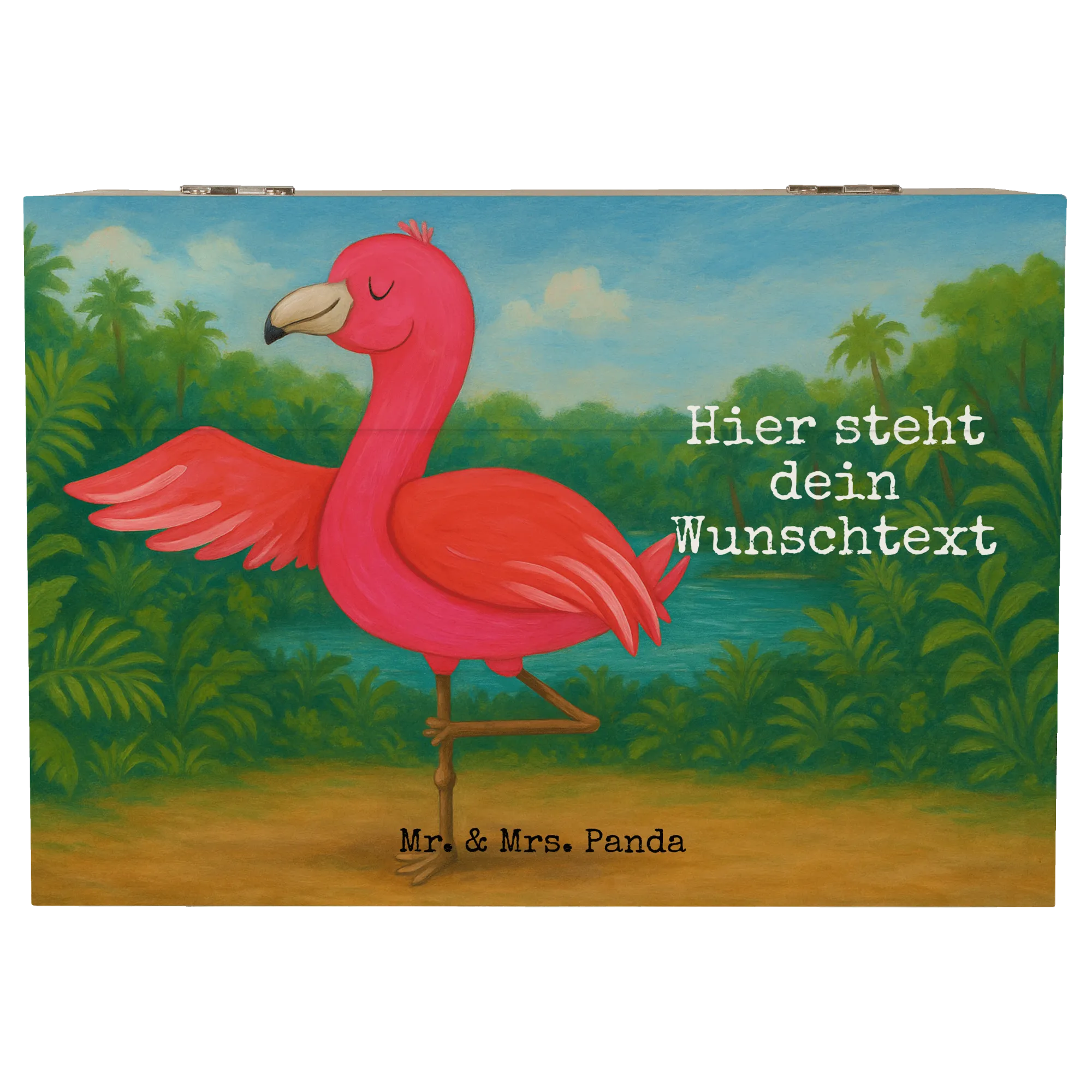 Personalizowane drewniane pudełko Flamingo joga Design - 19 x 12 cm
