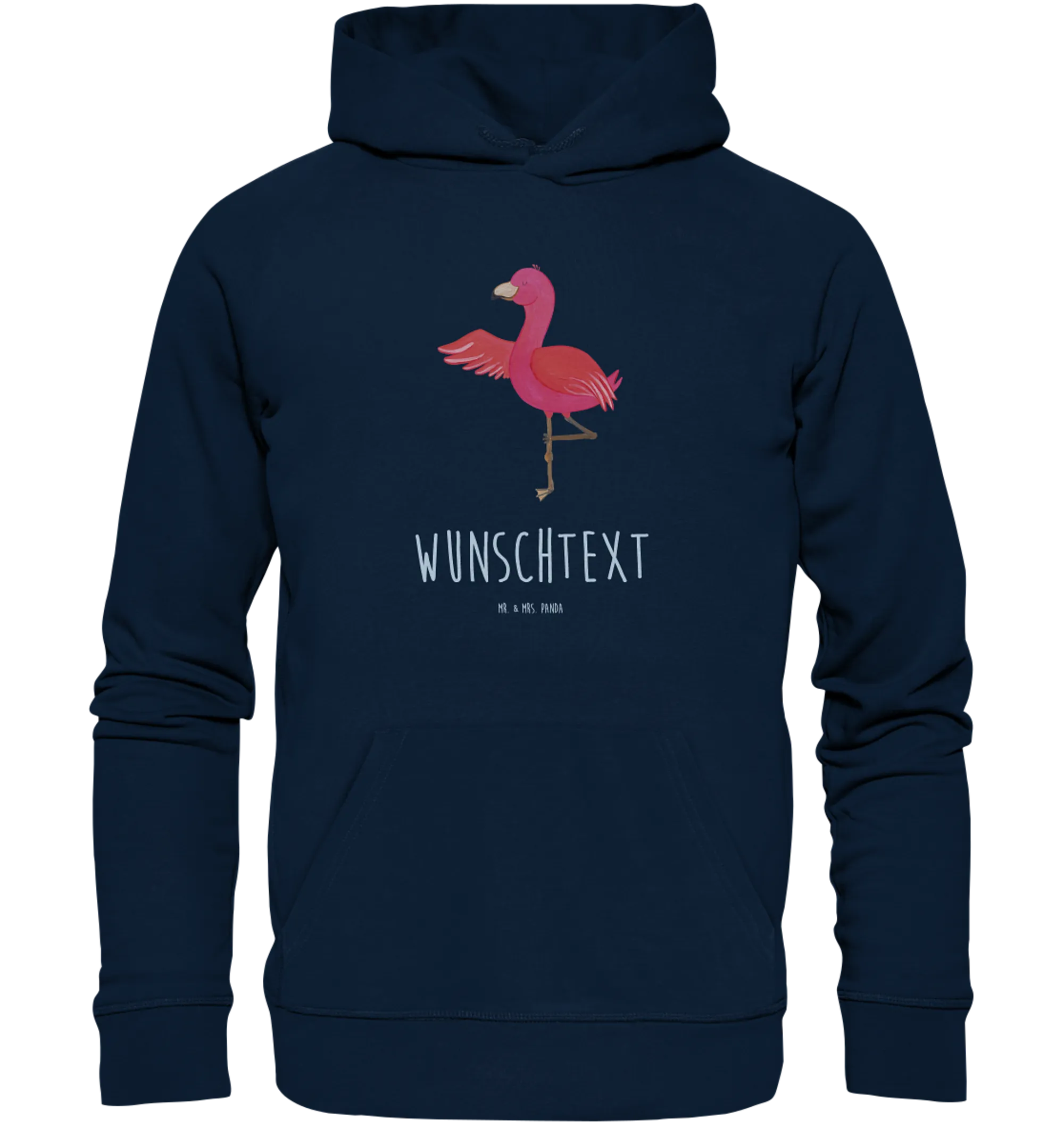 Du bist auf der Suche nach einem ganz besonderen Geschenk oder willst dir selbst eine Freude machen? Dann ist der personalisierte Hoodie "Flamingo Yoga" aus der charmanten Flamingo-Kollektion von Mr. & Mrs. Panda genau das Richtige für dich! Dieser hochwertige Kapuzenpullover besticht nicht nur durch sein auffälliges Design, sondern auch durch seine Flexibilität, da du ihn mit deinem ganz persönlichen Wunschtext oder Namen gestalten kannst.