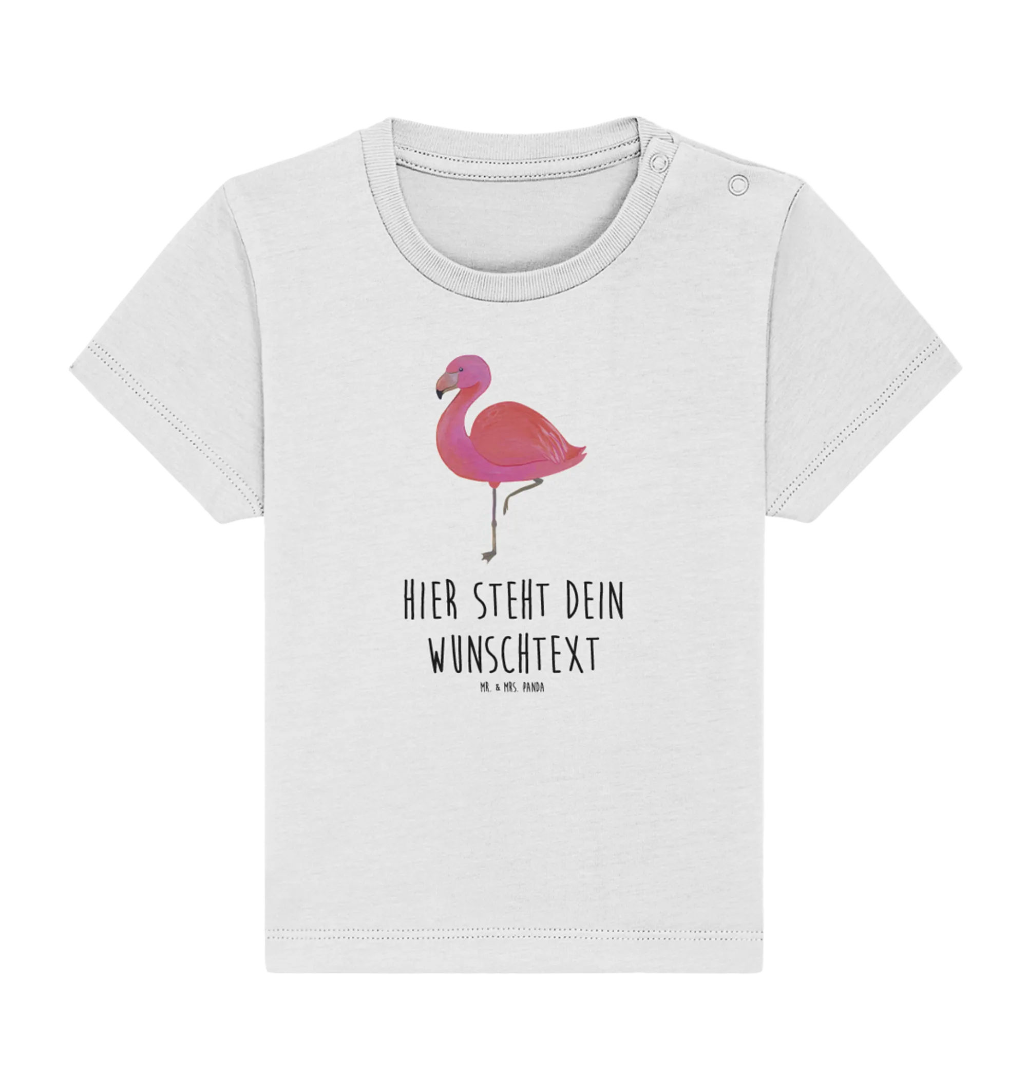 Das personalisierte Baby T-Shirt 'Flamingo classic' aus der liebevollen Flamingo-Kollektion von Mr. & Mrs. Panda ist das perfekte Geschenk für jede kleine Sommerfee! Wenn Du auf der Suche nach einem originellen und einzigartigen Kleidungsstück für Deinen kleinen Liebling bist, hast Du es gefunden. Dieses wunderschöne Baby T-Shirt bringt den fröhlichen Charme eines Flamingos direkt ins Kinderzimmer und macht es zu einem Highlight in jedem Kleiderschrank.