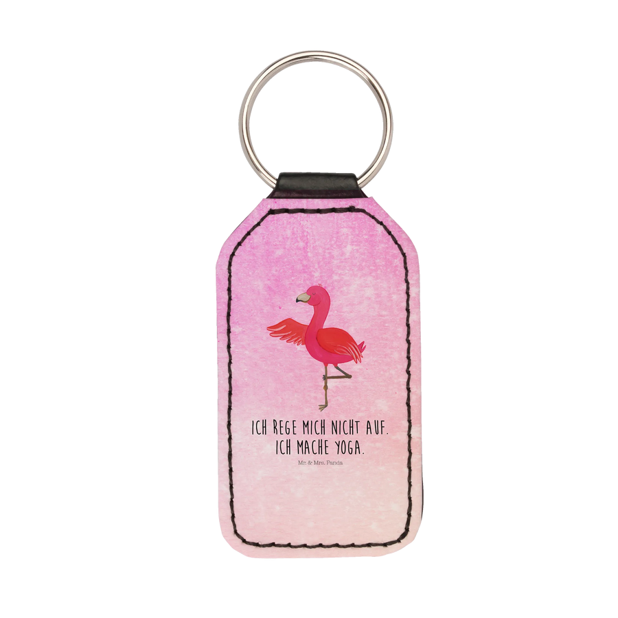 Prostokątny brelok Flamingo joga - z napisem - Akwarelowy róż