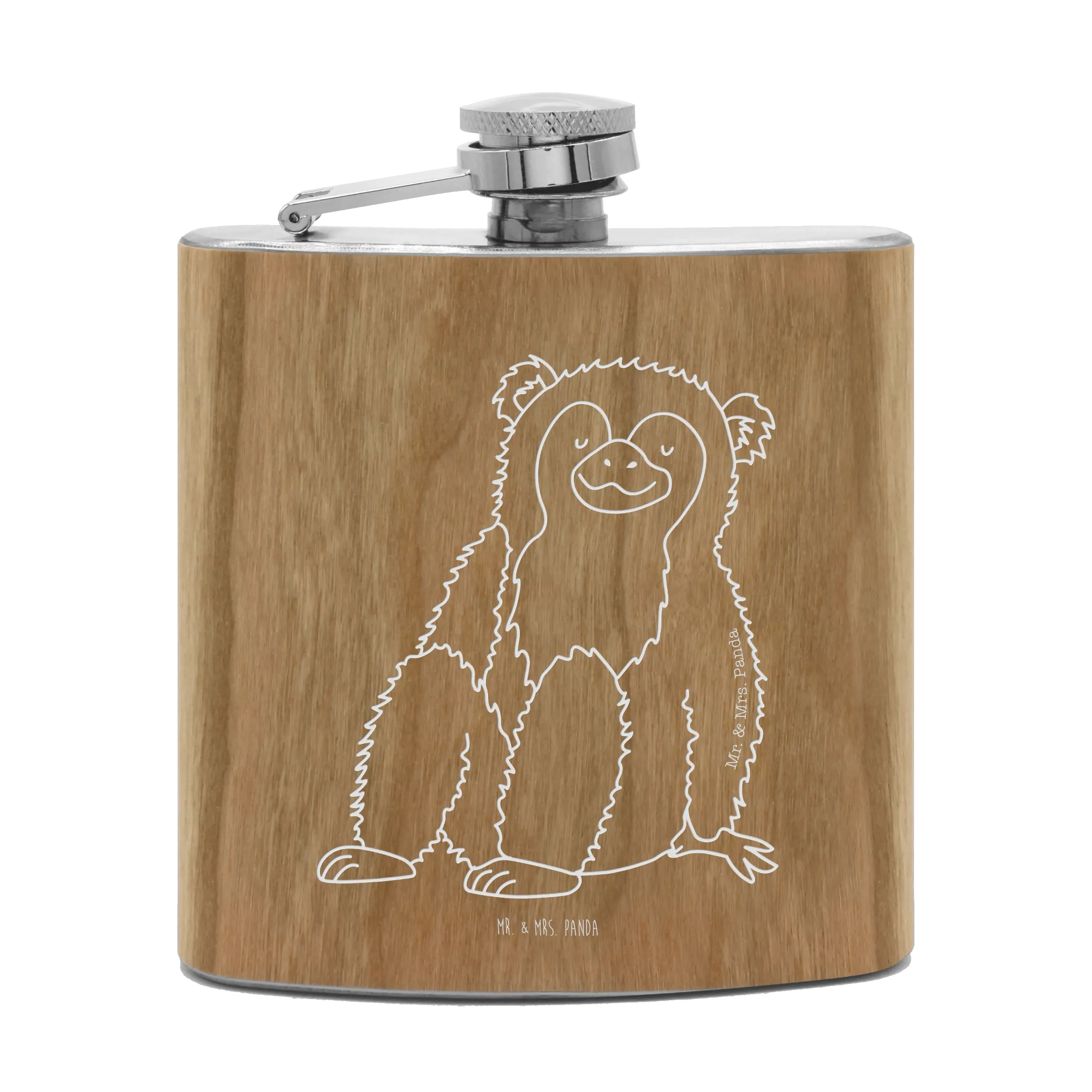 Entdecke den perfekten Flachmann von Mr. & Mrs. Panda - ein hochwertiger Edelstahl-Flachmann, der nicht nur praktisch ist, sondern auch mit einem bezaubernden Affen-Motiv aus der Afrika-Kollektion verziert ist!