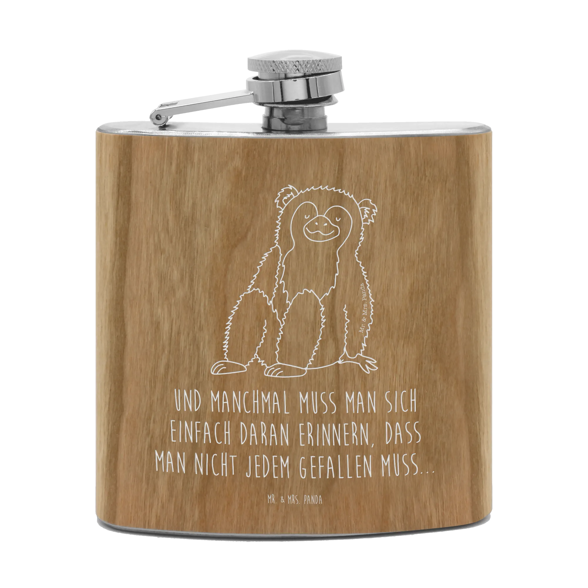 Ob beim Picknick, beim Camping oder einfach nur zu Hause - dieser Flachmann mit dem süßen Affen-Motiv ist genau das, was du benötigst, um dir und deinen Lieben eine Freude zu bereiten. Denn manchmal muss man sich einfach daran erinnern, dass man nicht jedem gefallen muss... Mit dem Flachmann von Mr. & Mrs. Panda hast du das perfekte Geschenk für kreative und selbstbewusste Frauen gefunden, die wissen, dass Selfcare an erster Stelle steht!