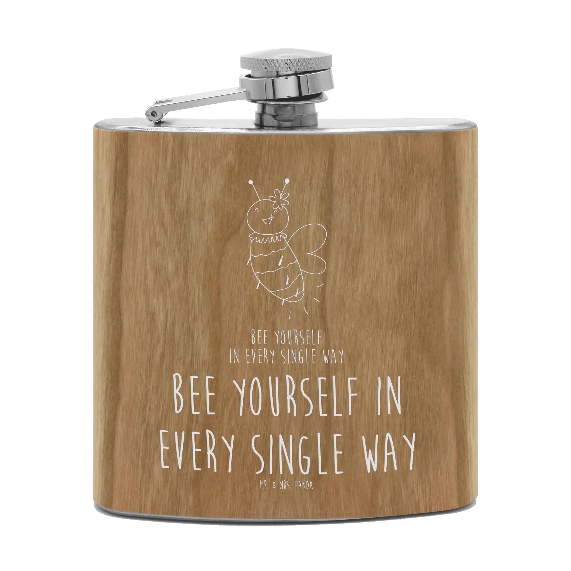Seine elegante Form und das wunderschöne Design mit der fröhlichen Biene und der zarten Blume machen ihn zum idealen Begleiter für sämtliche Abenteuer. Ob beim Junggesellen- oder Junggesellinnenabschied, bei Wanderungen in der Natur oder einfach auf dem nächsten Festival – der Flachmann ist superleicht, liegt gut in der Hand und passt in jede Tasche. Das hochwertige Material sorgt dafür, dass dein Getränk immer gut temperiert bleibt und das praktische Schraubverschluss-System verhindert ein Auslaufen.