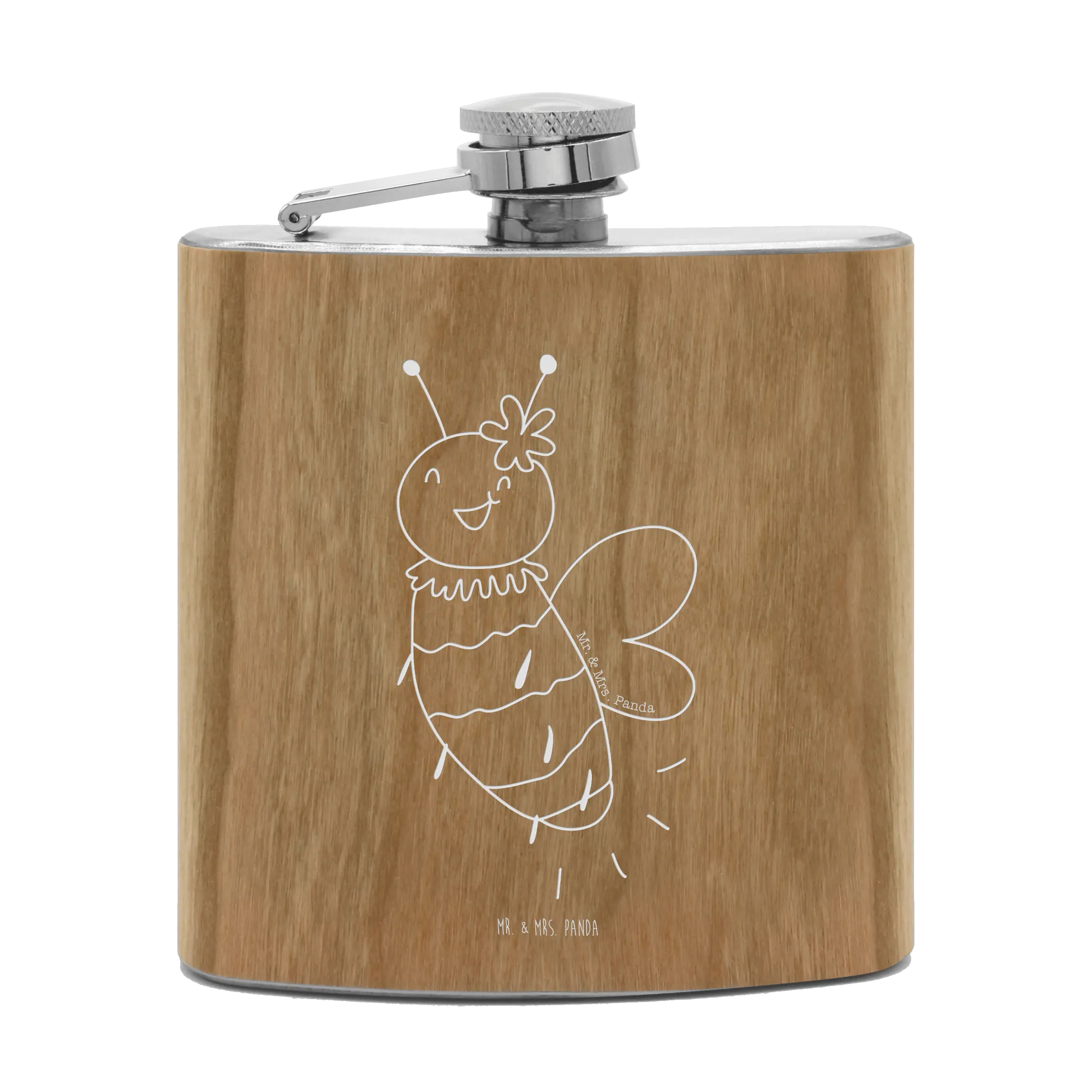 Die liebevolle Gravur mit dem zauberhaften Motiv der Biene und der Blume bringt ein Stück Sommer in deinen Alltag und zaubert jedem ein Lächeln ins Gesicht. Dieses Originalprodukt von Mr. & Mrs. Panda ist nicht personalisierbar, doch die positive Ausstrahlung des Designs spricht für sich.