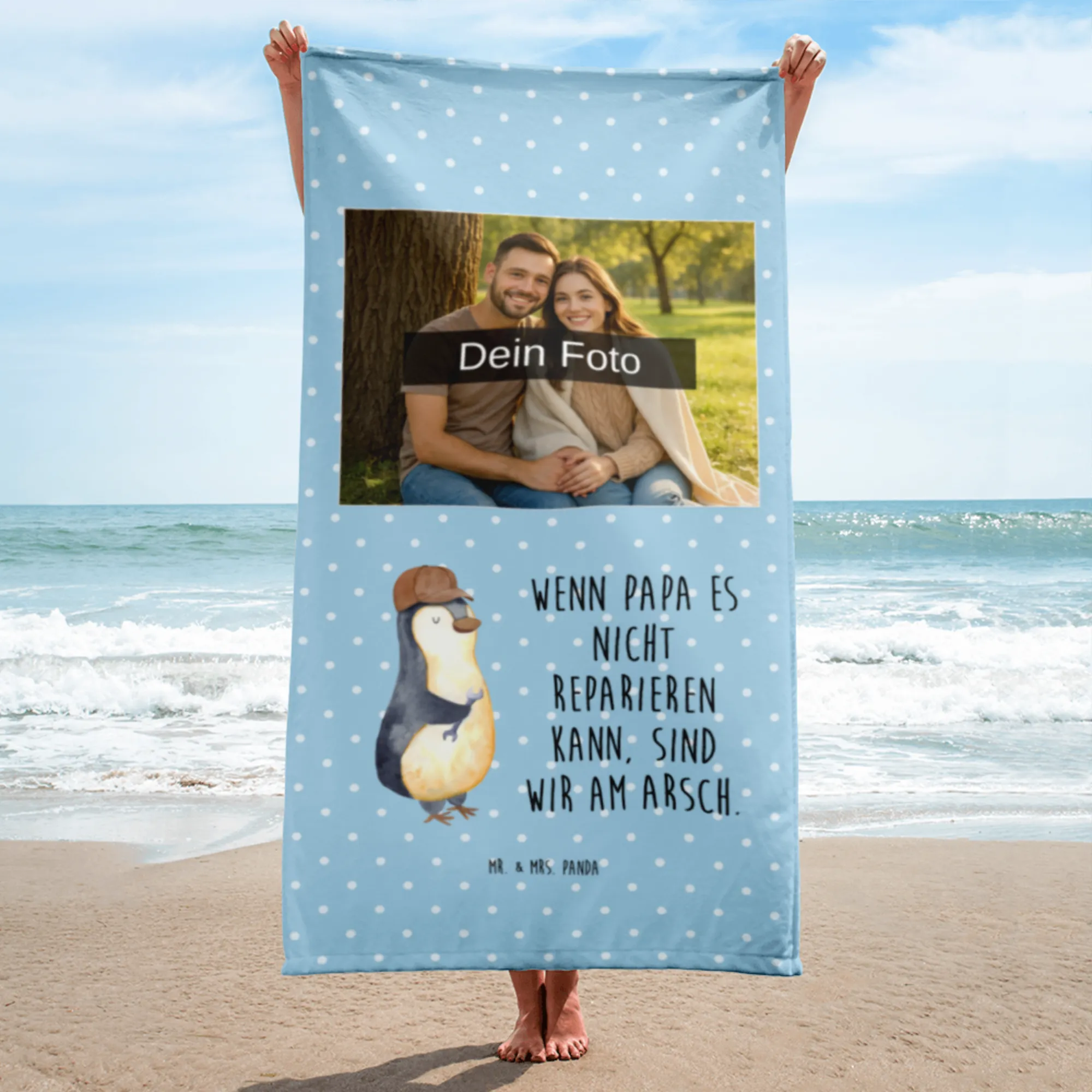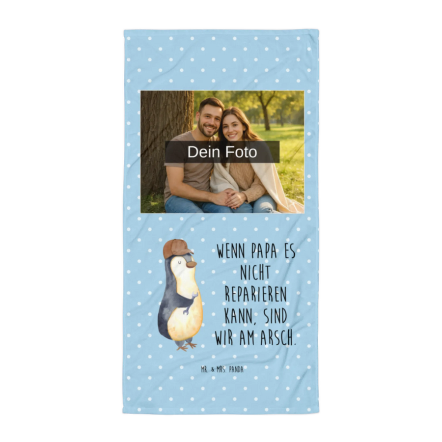 Foto XL ręcznik Jeśli tata tego nie naprawi, to jesteśmy w dupie - Pastelowy niebieski