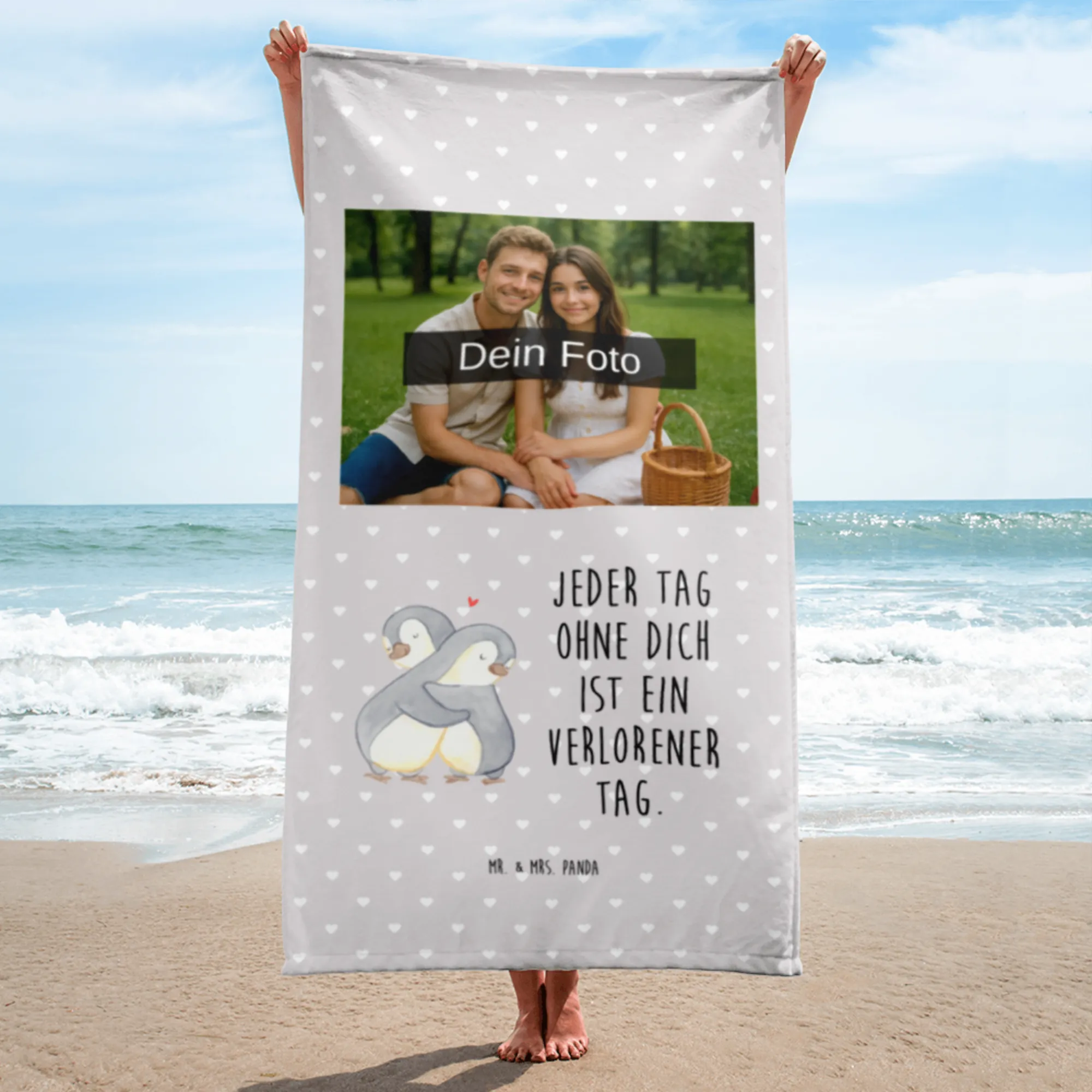 Foto XL ręcznik Pingwiny Przytulanie