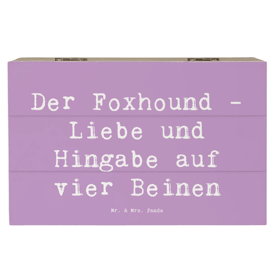 Die wunderschöne Holzkiste von Mr. & Mrs. Panda, bedruckt mit dem reizenden Motiv des Foxhound, ist das perfekte Geschenk für jeden Hundeliebhaber. Mit einem liebevollen Spruch wie "Der Foxhound - Liebe und Hingabe auf vier Beinen" bringt diese Erinnerungskiste nicht nur Freude, sondern auch eine ganz besondere Note in jedes Zuhause. Ob zum Geburtstag, zu besonderen Anlässen oder einfach als kleine Überraschung – diese Kiste ist ideal, um wundervolle Schätze aufzubewahren.