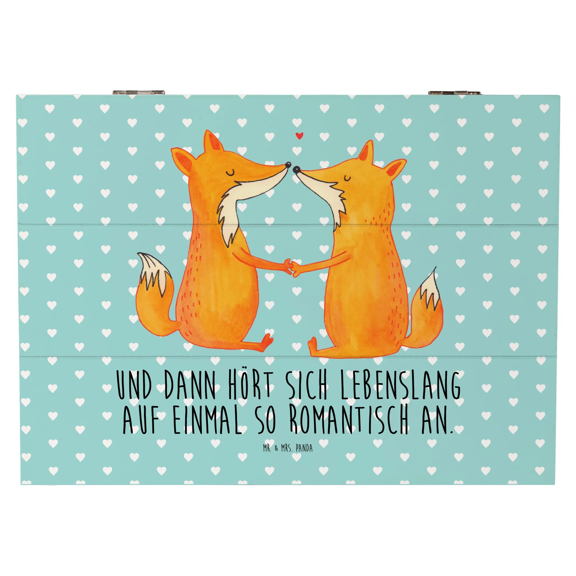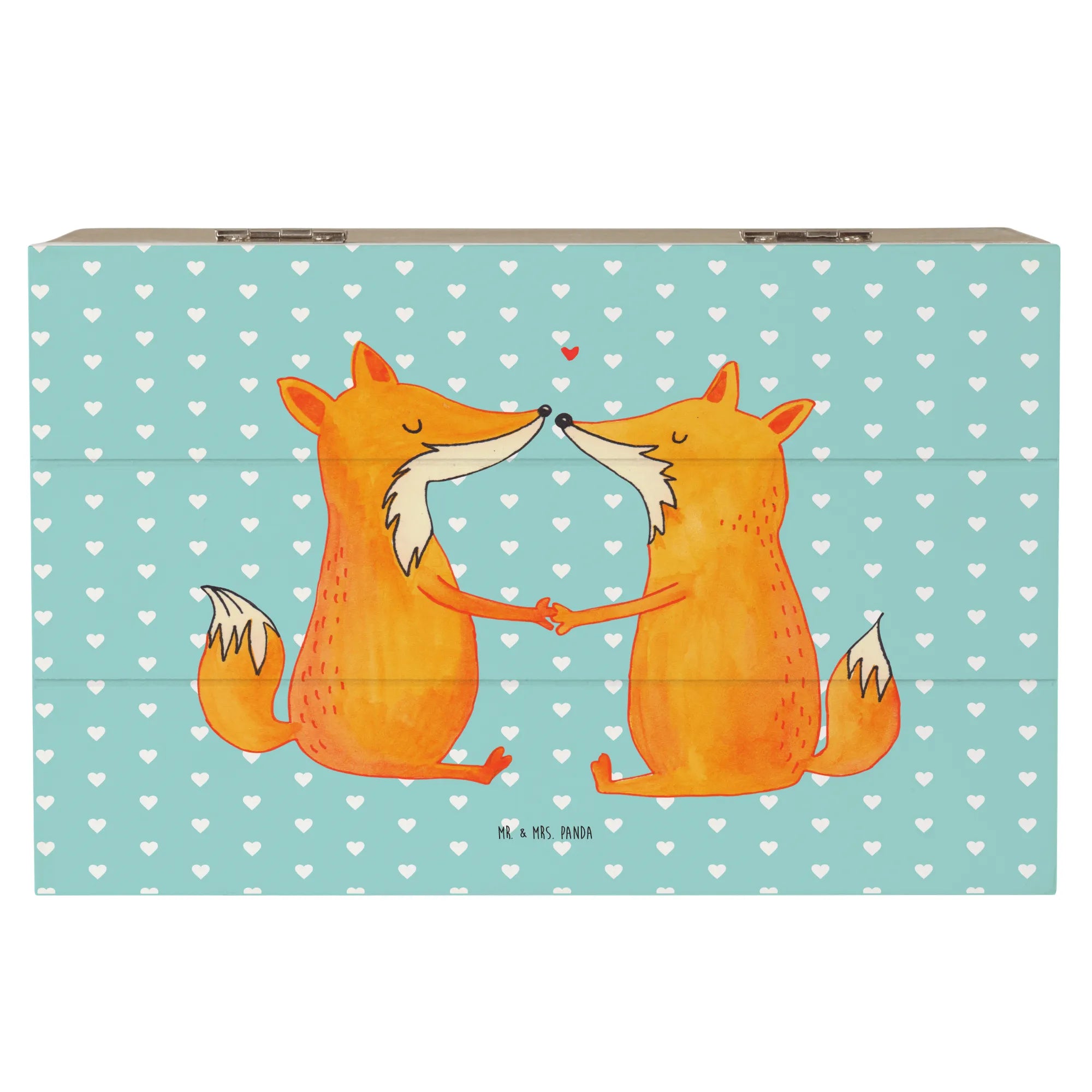 Skrzynia drewniana lisy miłość - 19 x 12 cm - z napisem - Biały